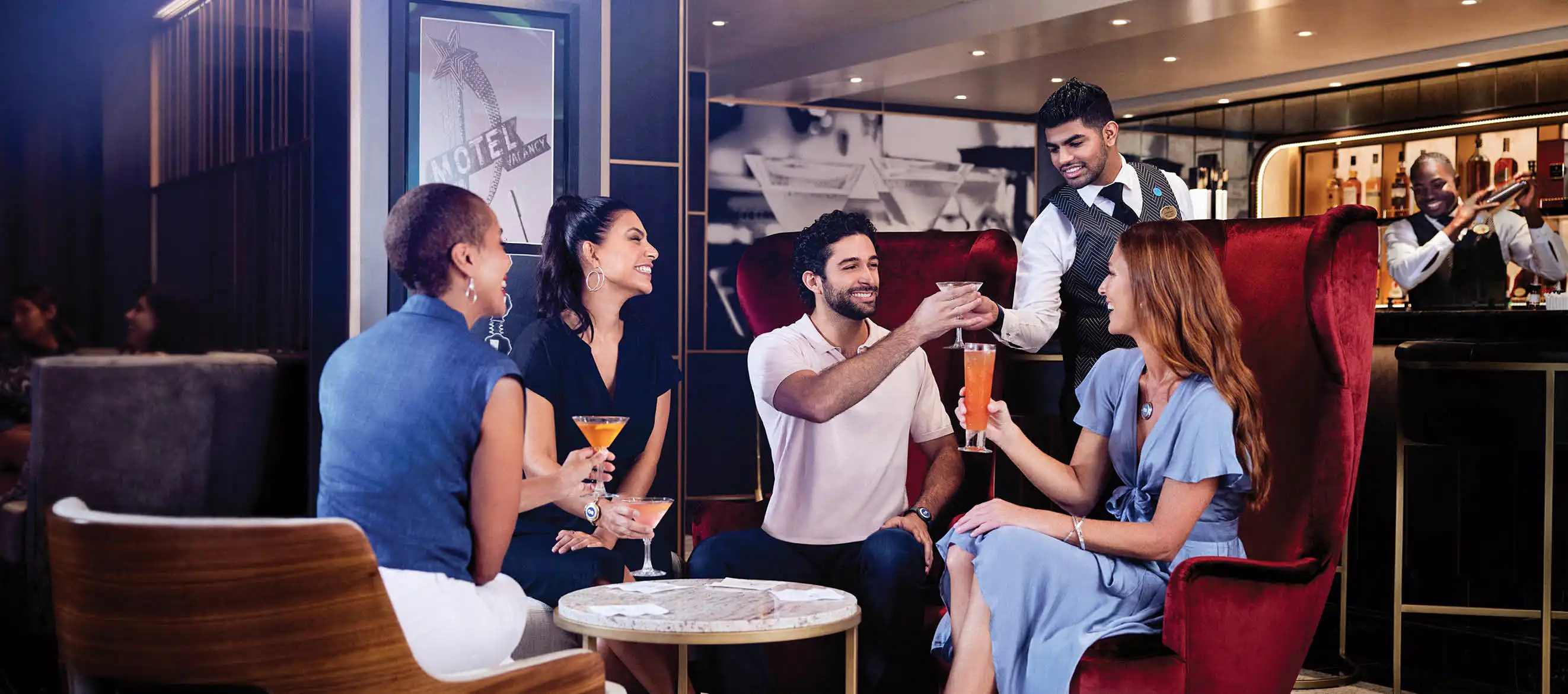 Disfruta de comidas increíbles en nuestros restaurantes relajados pero gratificantes con servicio de mesa y locales temporales que ofrecen algo para todos. Estos varían según el barco, pero incluyen: Alfredo’s Pizzeria, O’Malley’s, Ocean Terrace, Salty Dog Gastropub y más.