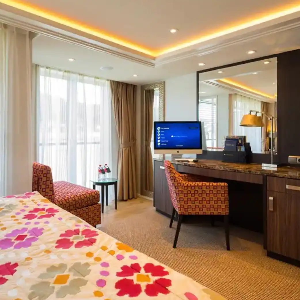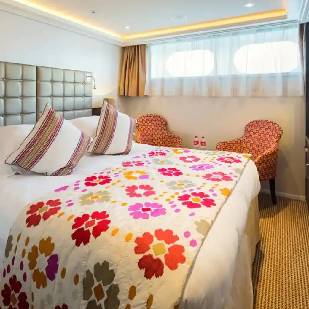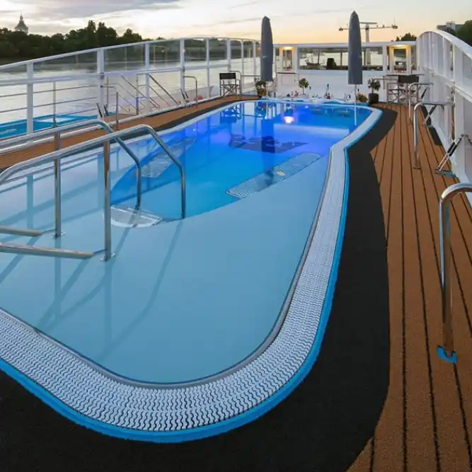 Toma el sol o date un chapuzón en nuestra refrescante piscina con bar mientras pasamos por castillos centenarios, encantadores pueblos y otros paisajes impresionantes.