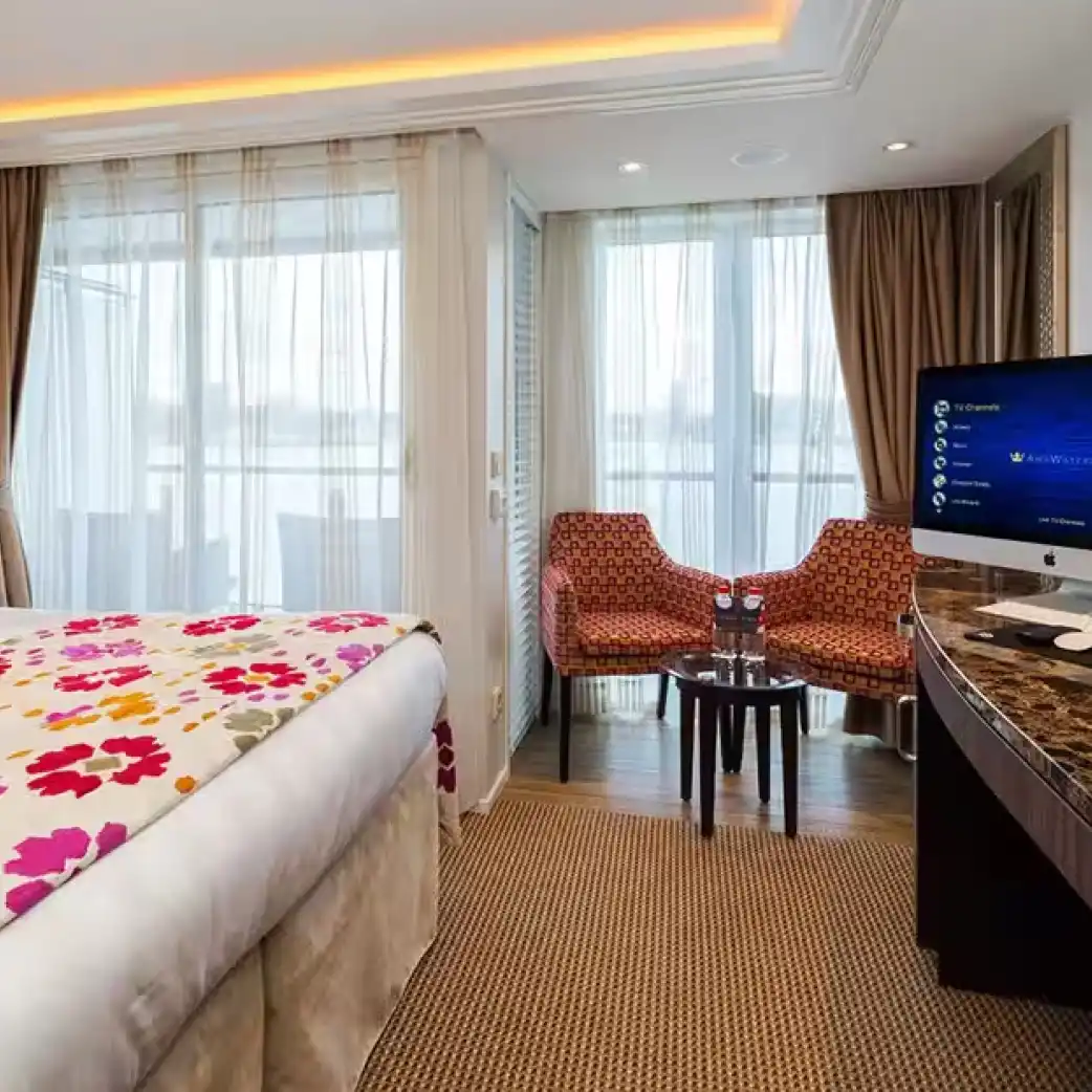 El AmaBella de AmaWaterways es un elegante barco fluvial que recorre los ríos europeos, especialmente el Danubio, ofreciendo una experiencia de lujo a bordo. Con capacidad para 160 pasajeros, cuenta con camarotes amplios que incluyen balcones dobles, además de espacios como piscina climatizada, gimnasio y salones panorámicos. Su oferta gastronómica destaca por la cocina gourmet en el restaurante principal y en “The Chef’s Table”, reflejando el alto estándar culinario de la naviera.