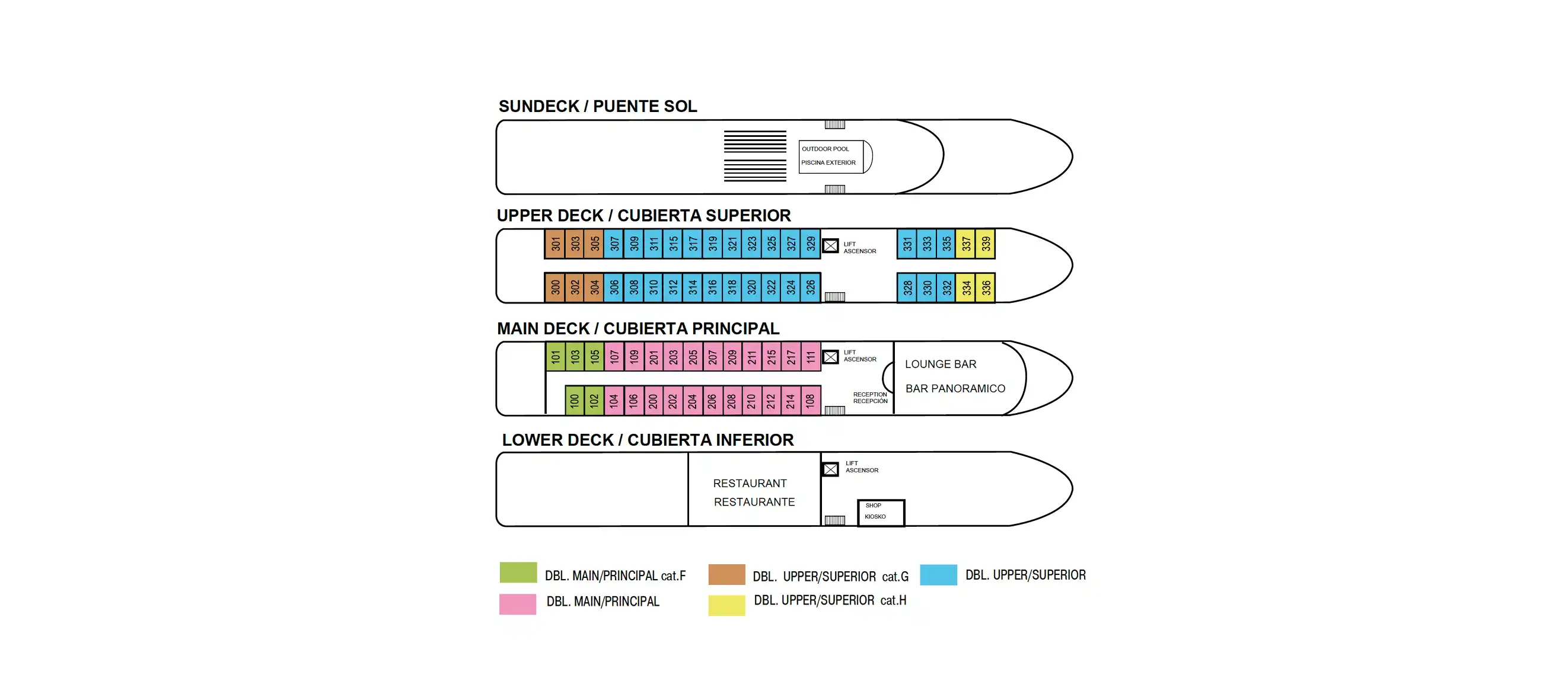 - Cabinas amplias y luminosas de unos 15 m²