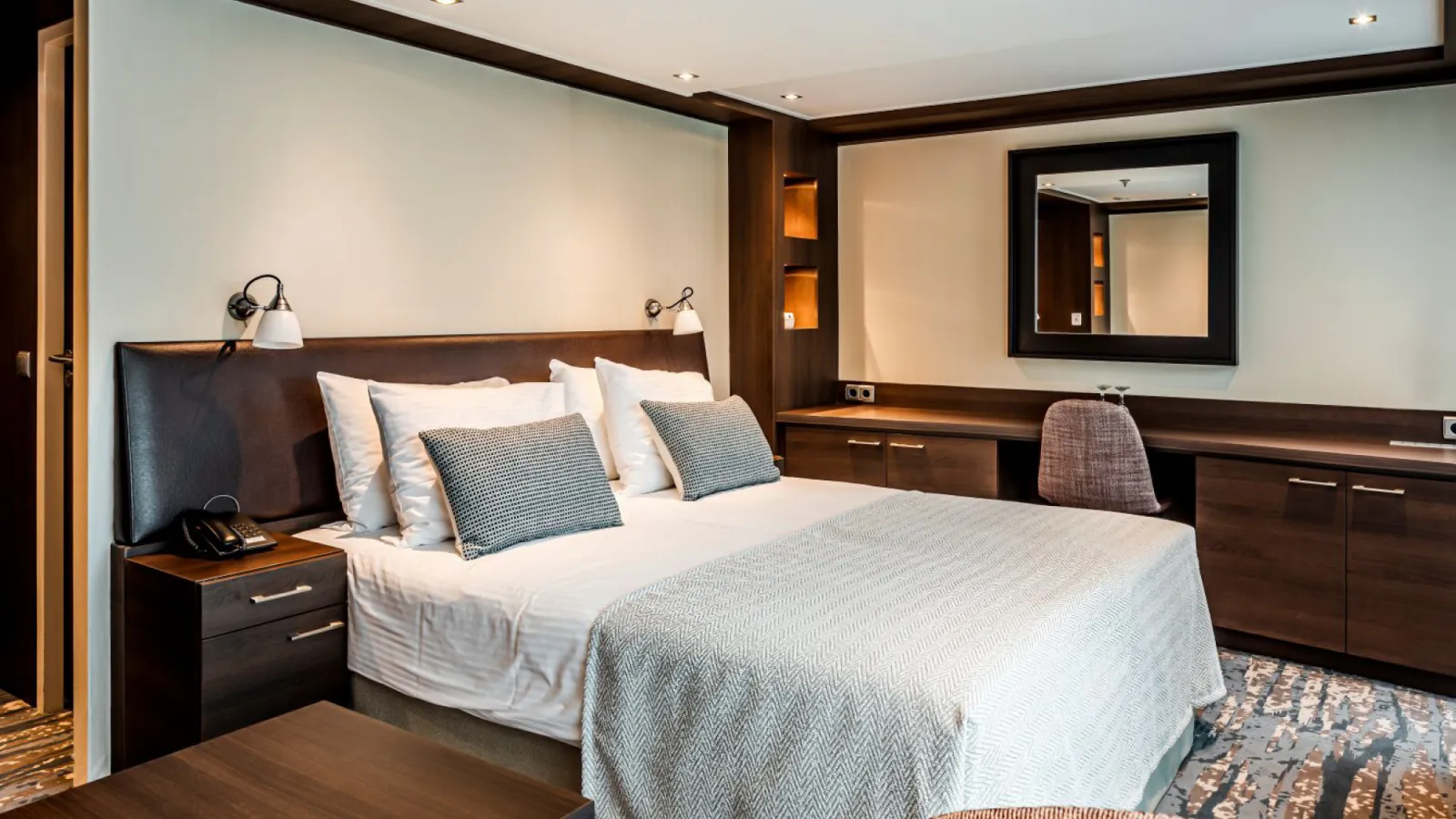 El MS “Leonora” es un distinguido crucero fluvial con capacidad para 140 pasajeros, pensado para disfrutar de los ríos europeos con comodidad y elegancia. A bordo, destaca por sus espacios luminosos y bien diseñados, como el restaurante panorámico, el lounge bar y el Puente Sol con piscina y tumbonas, ideales para el descanso. Sus amplias cabinas, muchas con balcón francés, ofrecen un ambiente funcional y acogedor, complementado por un servicio atento que garantiza una experiencia tranquila y refinada durante toda la travesía.
