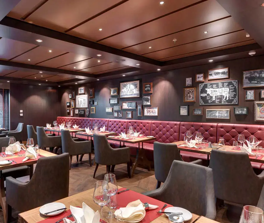 Este asador al estilo estadounidense sirve la carne de ternera Angus más selecta, Linz Heritage, referencia mundial gracias a que los animales se crían con la mejor selección genética. La carne, de la máxima calidad, se corta de manera individual por parte de expertos carniceros y se envejece hasta alcanzar la perfección. La carta, inspirada en las grandes llanuras, viene complementada por atrevidos vinos del Nuevo Mundo y cócteles de moda.