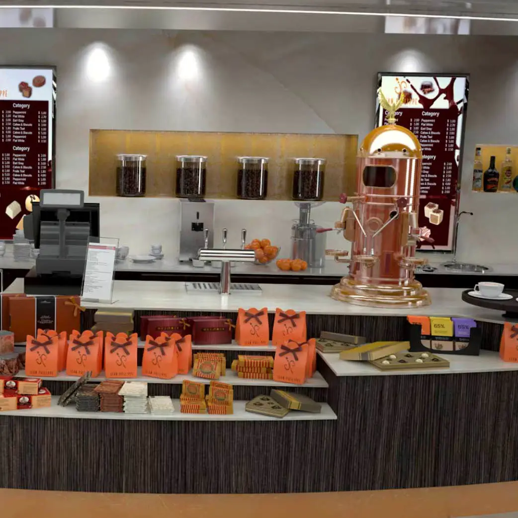 El maestro pastelero y chocolatero francés Jean-Philippe Maury aporta su prestigioso toque a esta cafetería y boutique del chocolate, en la que podrás disfrutar de sus exclusivas delicatessen creadas solo para ti en una cocina abierta. Además de elegir de entre una variedad de exquisitos bombones preparados por el chef, los pasajeros también podrán preparar sus propias barras de chocolate en los puestos de elaboración de tabletas. La boutique ofrece asimismo un extenso abanico de deliciosos macarons franceses y un café recién tostado. Vamos, que con independencia de tus gustos, siempre encontrarás algo que satisfaga a tu paladar.