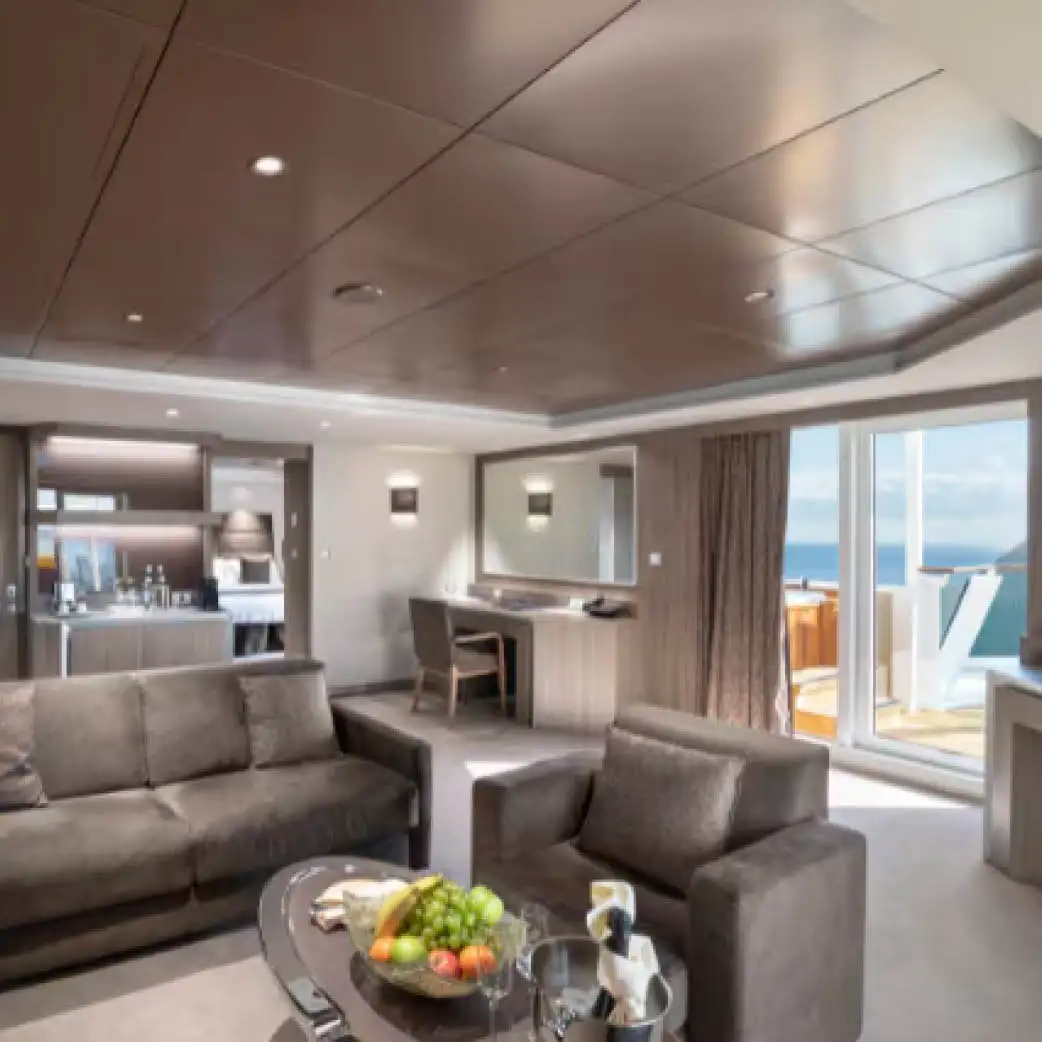 Servicio de mayordomo las 24 horas del día y conserje dedicado, Selección de bebidas Premium Extra y Selección de Internet. Acceso gratuito a la Zona Termal de MSC Aurea Spa, Selección de masaje balinés y Selección de restaurante de especialidades; disponible 2 días antes del embarque; 10% de descuento en todos los tratamientos Spa comprados a bordo y 1 cambio de crucero