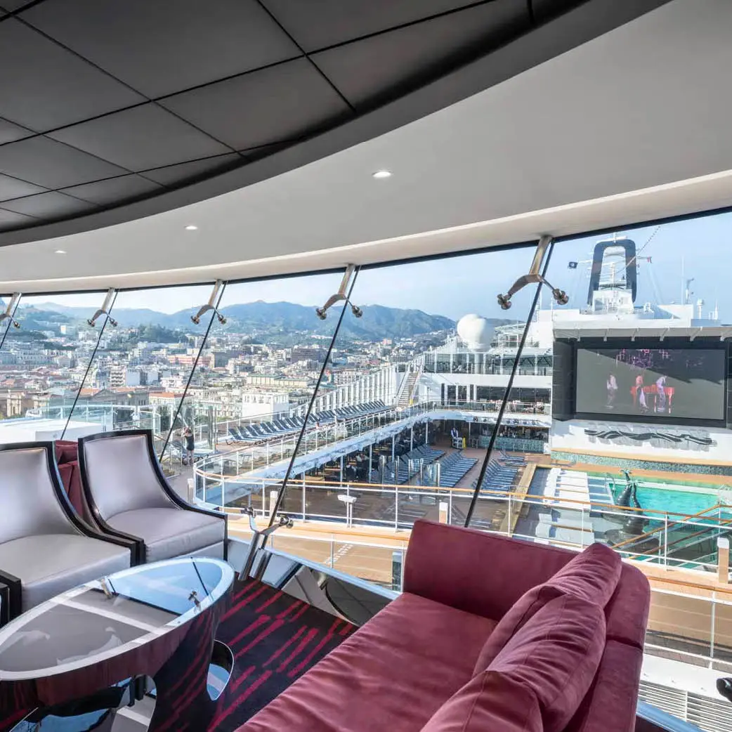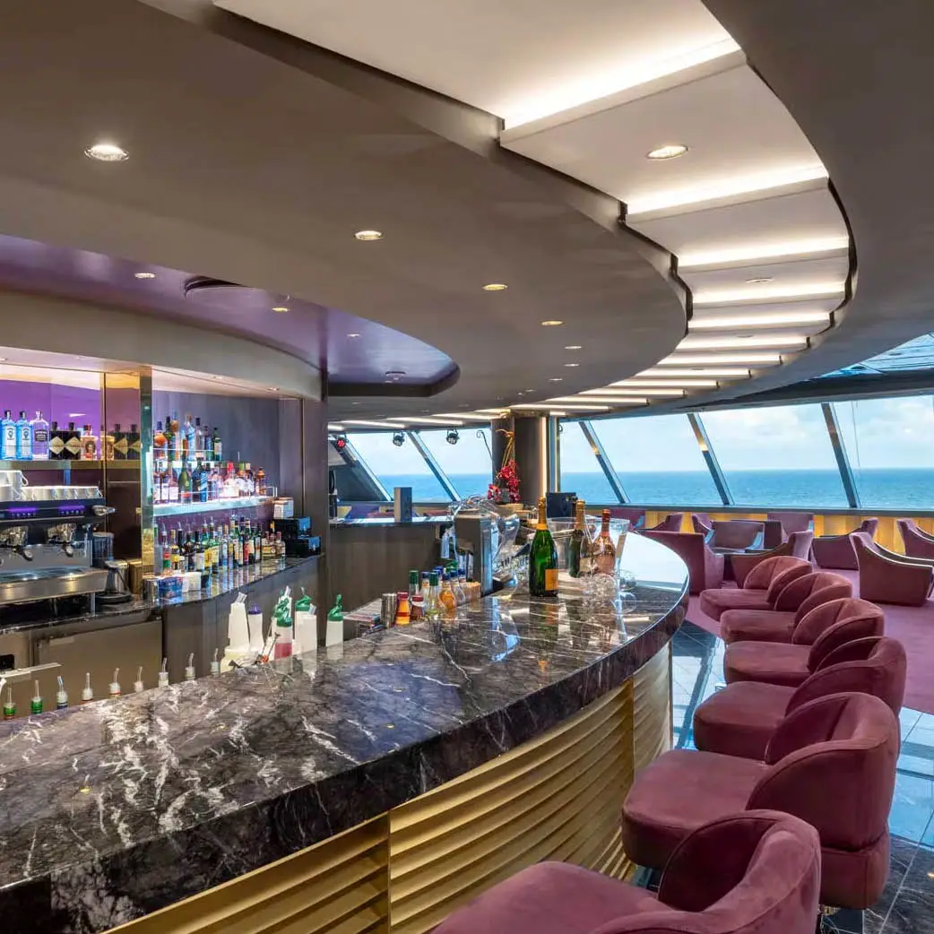 Disfruta de unas vistas espectaculares desde este elegante salón, con una oferta de licores, cócteles artesanales, cervezas, vinos, refrescos y cafés exclusiva para los socios de MSC Yacht Club. También podrás saborear una deliciosa selección de pinchos gourmet a lo largo del día.