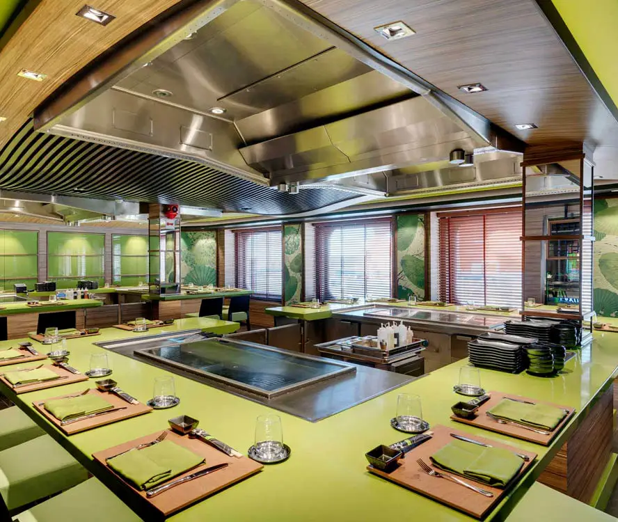 Un estiloso restaurante especializado en teppanyaki. Elige tu sitio en una de las cuatro zonas de cocina, y contempla cómo se van haciendo realidad ante tus propios ojos los platos más deliciosos de la gastronomía japonesa. Nuestros expertos chefs cocinan con estilo en una parrilla abierta, creando un auténtico festival para los sentidos que, gracias a las llamas y a los mejores y más crujientes ingredientes, da forma a unos platos exquisitos que no olvidarás jamás.