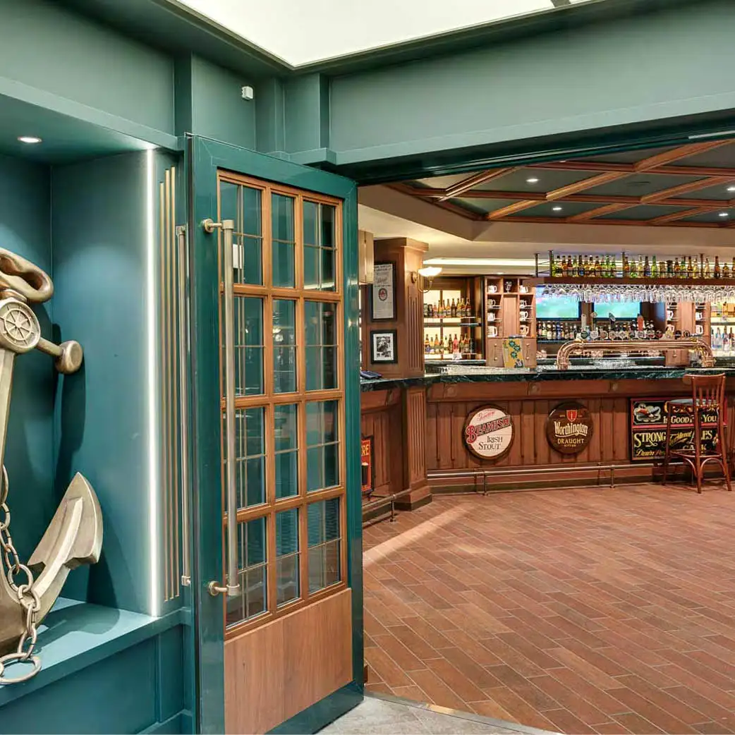Animado y carismático, nuestro tradicional pub inglés es el sitio ideal para pasar un buen rato y disfrutar de una rica pinta de cerveza, de los mejores licores, o de un amplio abanico de cócteles a base de cerveza. Y si te entra hambre, puedes saborear nuestras hamburguesas, perritos y el tradicional fish and chips rebozado en cerveza elaborado con los mejores ingredientes por nuestros talentosos chefs.