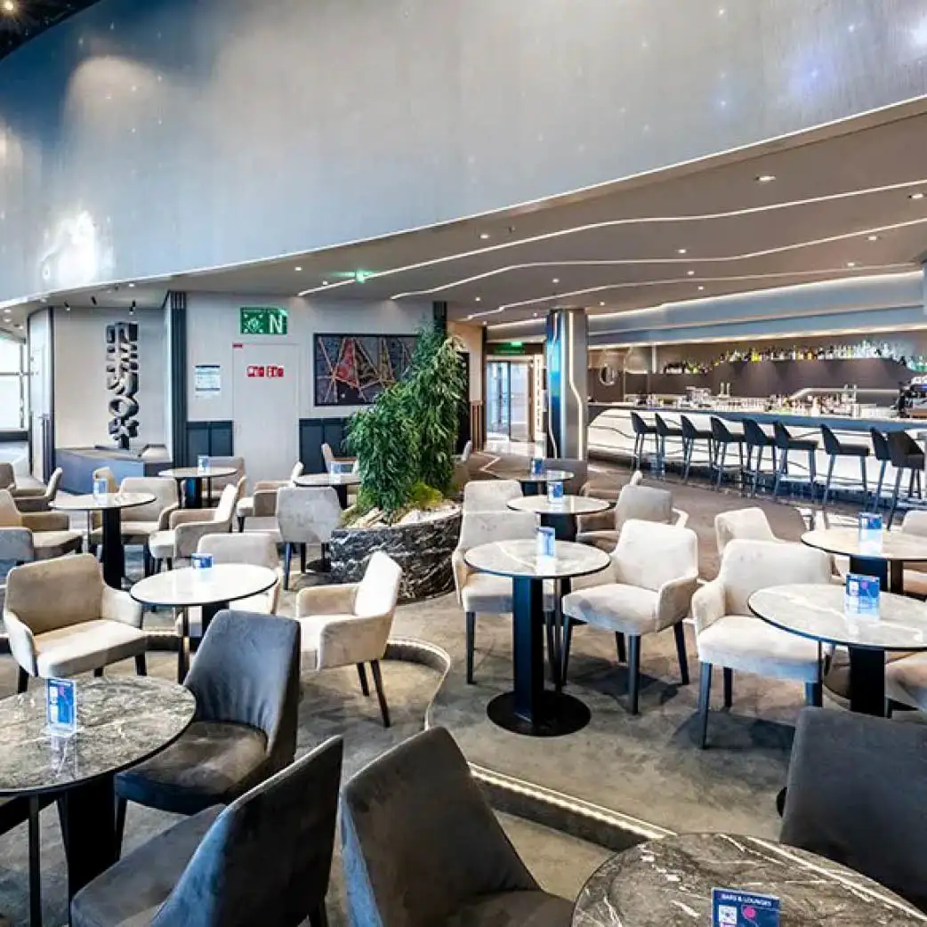 21 bares: 5 bares al aire libre con vistas impresionantes y 16 bares interiores, cada uno ofreciendo una experiencia única.