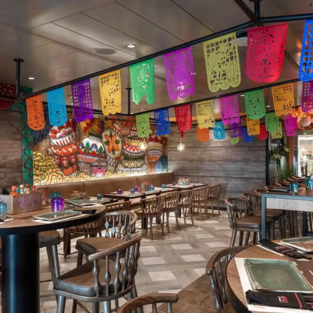 El nuevo concepto de comida callejera de estilo informal ofrece una selección de platos y bebidas inspirados en América Latina y México, para compartir y difsrutar en un ambiente relajado y amigable, abierto para almuerzo y cena. Elige entre una tentadora vari desde tacos y nachos hasta deliciosos tamales y sopa detortilla, o tacos vegetarianos, todo para ser saboreado con nuestra selecciónde las 10 mejores tequilas y mezcales.