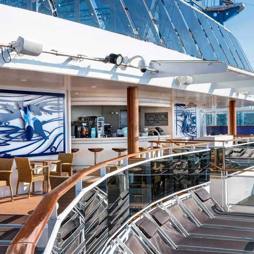 Situado en la popa del barco, The Carousel Lounge ofrece impresionantes vistas panorámicas del océano, lo que te permitirá relajarte durante el día o participar en una serie de actividades, así como disfrutar de una gran variedad de música en directo todas las noches.