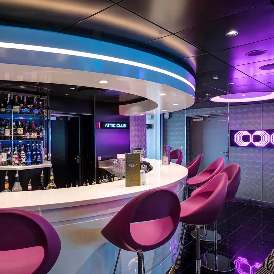 Situado en la popa del barco, The Carousel Lounge ofrece impresionantes vistas panorámicas del océano, lo que te permitirá relajarte durante el día o participar en una serie de actividades, así como disfrutar de una gran variedad de música en directo todas las noches.