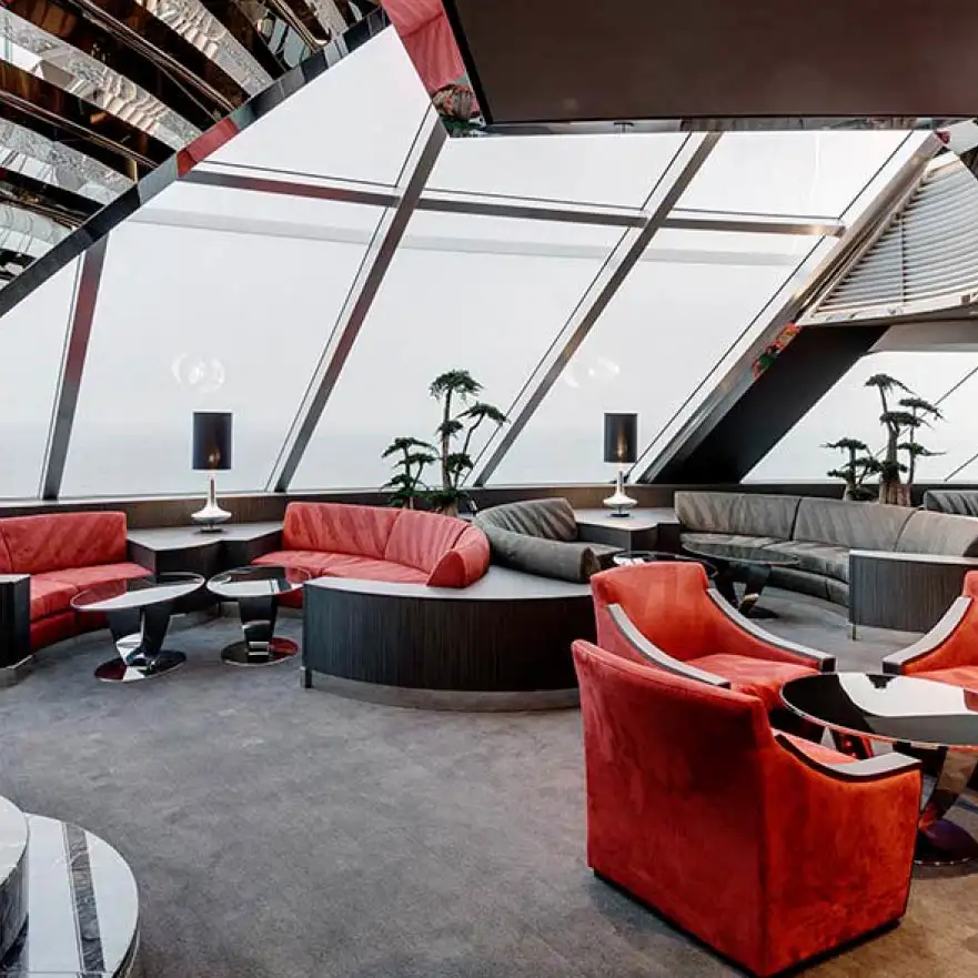 Hay una amplia gama de elegantes bares y salones a bordo, que ofrecen refresco y relajación en el ambiente ideal para cada momento. Así que si buscas champán, cócteles o pastelería fresca, no tendrás que ir muy lejos.