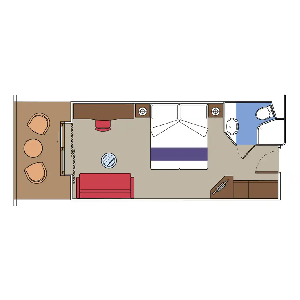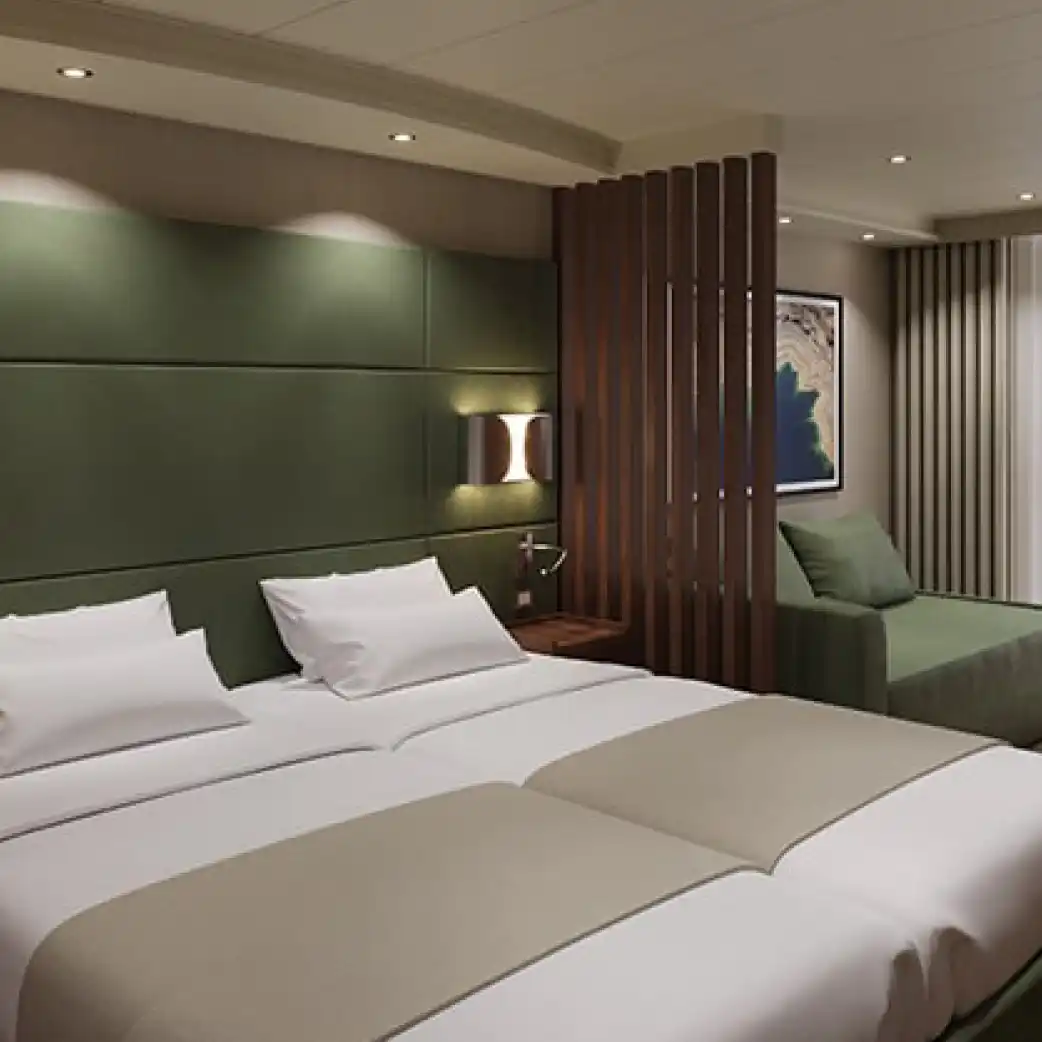 Elige entre una amplia variedad de elegantes alojamientos, que incluyen suites, camarotes con balcón con vistas al mar e incluso camarotes con balcón comunicados para familias.