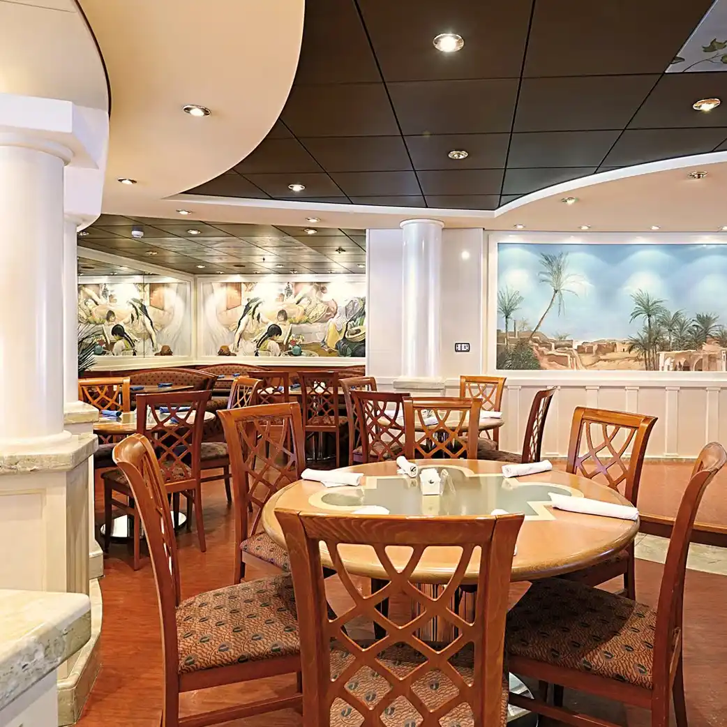 El Gli Archi Buffet Restaurant del MSC Musica ofrece una amplia variedad de platos internacionales y mediterráneos en formato buffet, ideal para comidas informales. Destacan especialidades como las pizzas italianas recién horneadas, pasta al dente, mariscos frescos y postres variados. Su ambiente moderno y luminoso permite disfrutar de menús adaptados a todos los gustos y edades.