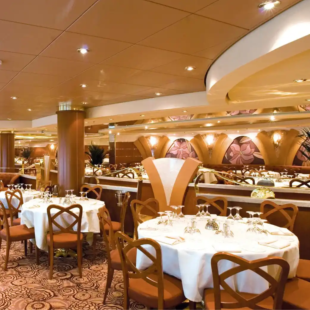 El Oleandro Restaurant en el MSC Musica ofrece una experiencia gastronómica elegante con platos de cocina internacional y mediterránea. Sus menús cuidadosamente elaborados incluyen opciones de carne, pescado y vegetarianas, presentadas con esmero, combinando tradición y creatividad para disfrutar de comidas sofisticadas en un ambiente refinado y confortable.