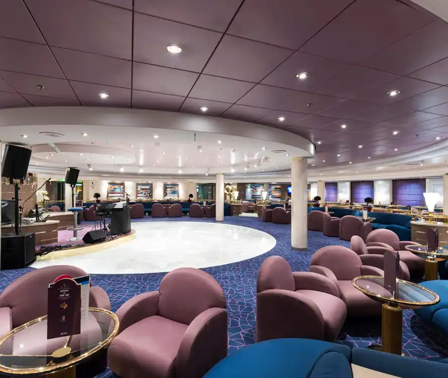 Desde sus restaurantes elegantes y bares con encanto, hasta los espectáculos en vivo y los espacios dedicados al relax, cada detalle está pensado para que disfrutes del viaje a cualquier hora del día.
