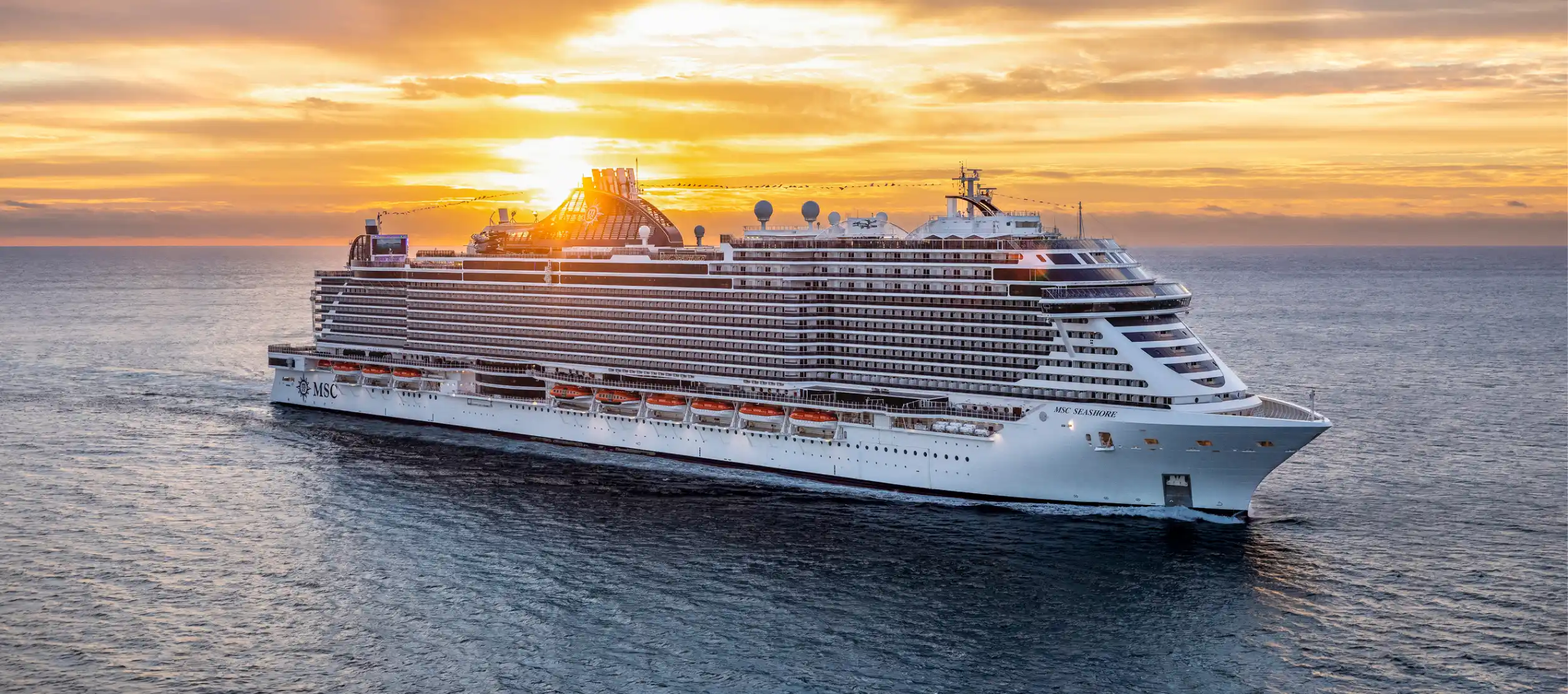 El primero de los dos barcos Seaside EVO - class. Basándose en el diseño innovador y pionero de la clase de barcos Seaside, cuyo objetivo es acercar a los pasajeros al mar, MSC Seashore se ha ampliado y mejorado con una variedad de características, espacios y experiencias completamente nuevos para los pasajeros.