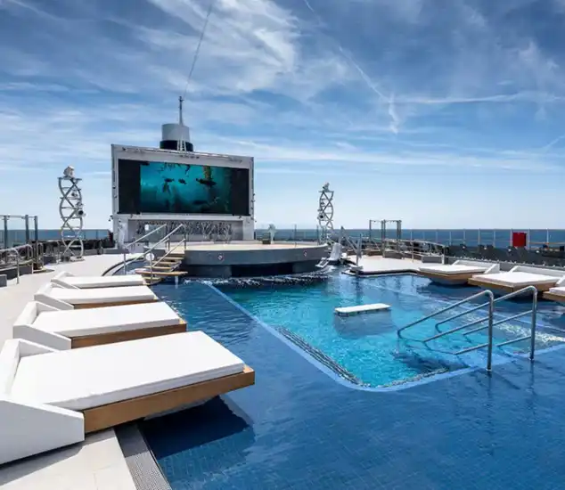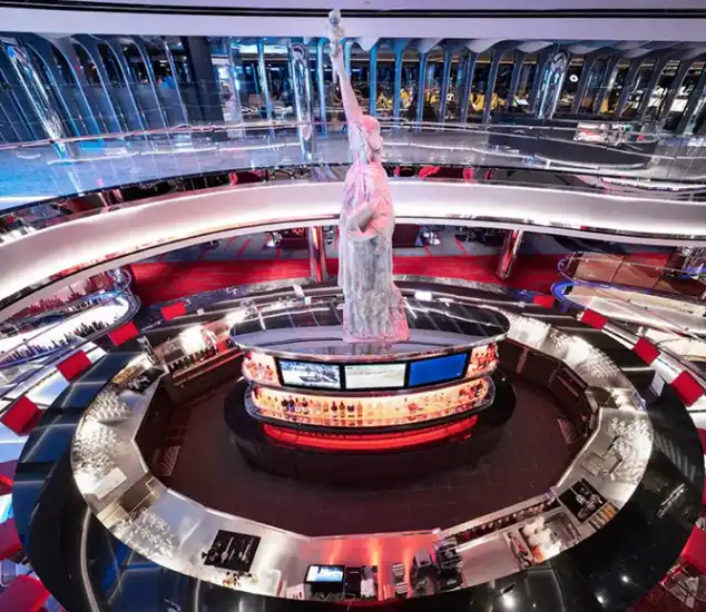 MSC Seashore rinde homenaje a Nueva York, reflejando su espíritu cultural y de descubrimiento en el diseño, las zonas comunes y los nombres de sus espacios. Destacan una réplica de tres metros de la Estatua de la Libertad en el casino y la zona Times Square, con un mural LED de 8,5 metros que abarca cuatro cubiertas y proyecta el icónico skyline de Manhattan, transformando el lugar según el día o la noche para una experiencia de entretenimiento única.