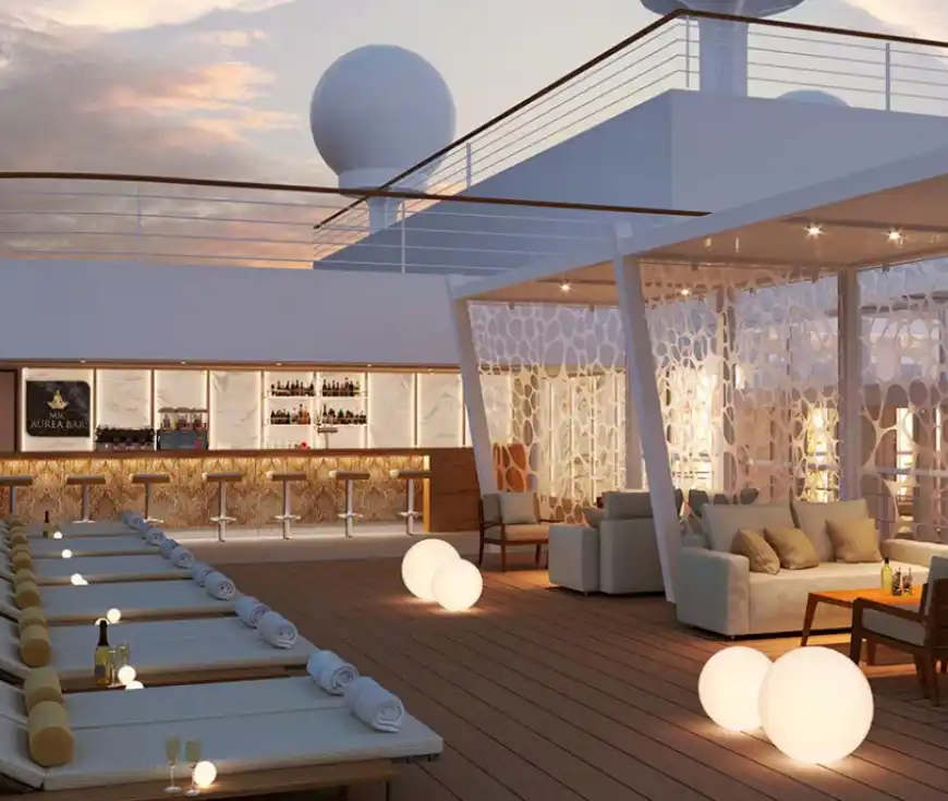 Acceso gratuito a la Zona Termal de MSC Aurea Spa, Selección de masaje balinés y Selección de restaurante de especialidades; disponible 2 días antes del embarque; 10% de descuento en todos los tratamientos Spa comprados a bordo y 1 cambio de crucero