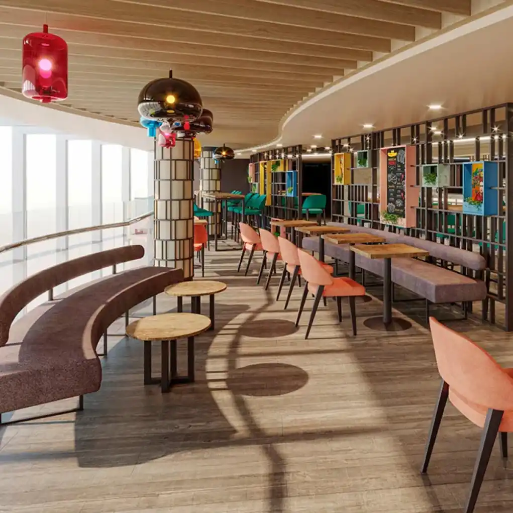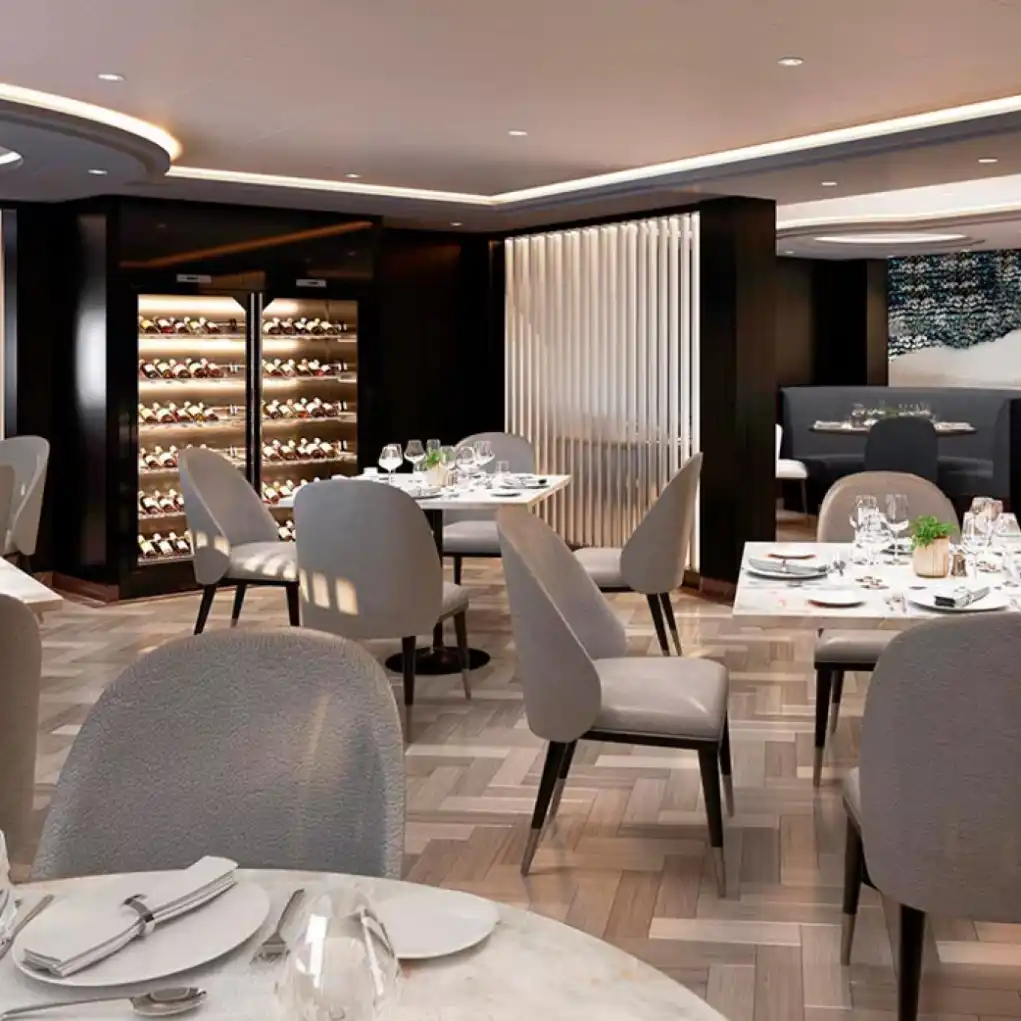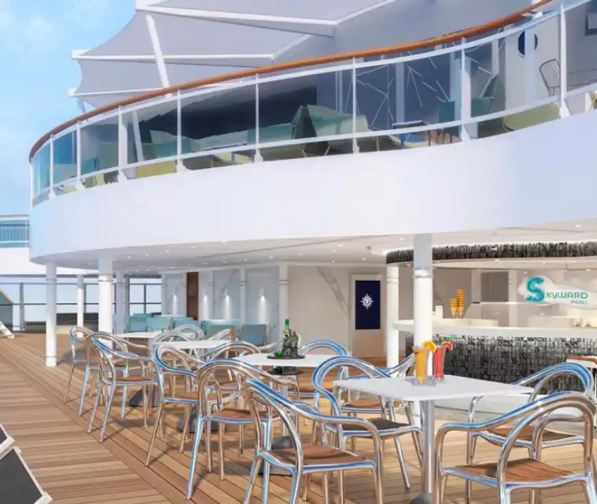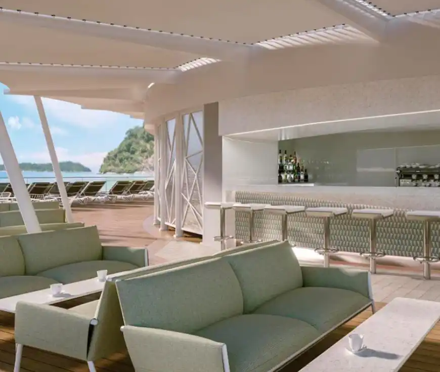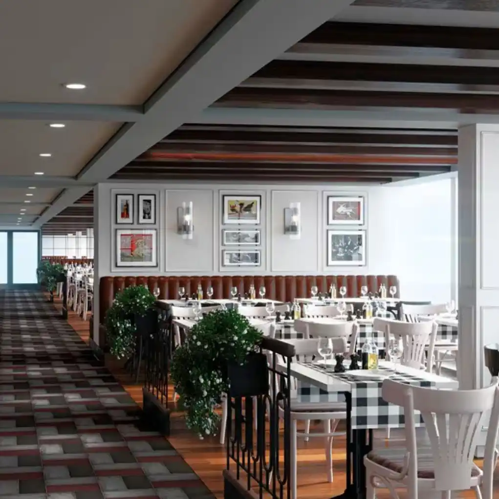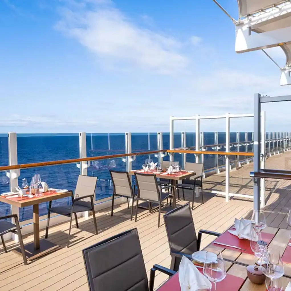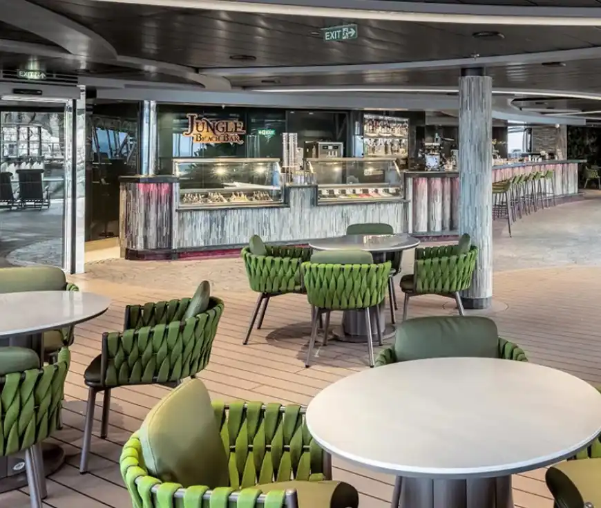 Un lugar maravillosamente cómodo e informal para comer. Es el lugar perfecto para disfrutar de una gran experiencia gastronómica mediterránea informal con una espectacular vista al mar. Las cocinas visibles y una zona de producción de mozzarella permiten a los pasajeros observar cómo nuestros chefs preparan los alimentos frescos. La amplia zona de buffet incluye varios rincones multifunción en los que se sirven platos internacionales, cocina étnica, opciones saludables y multitud de otros sabores.