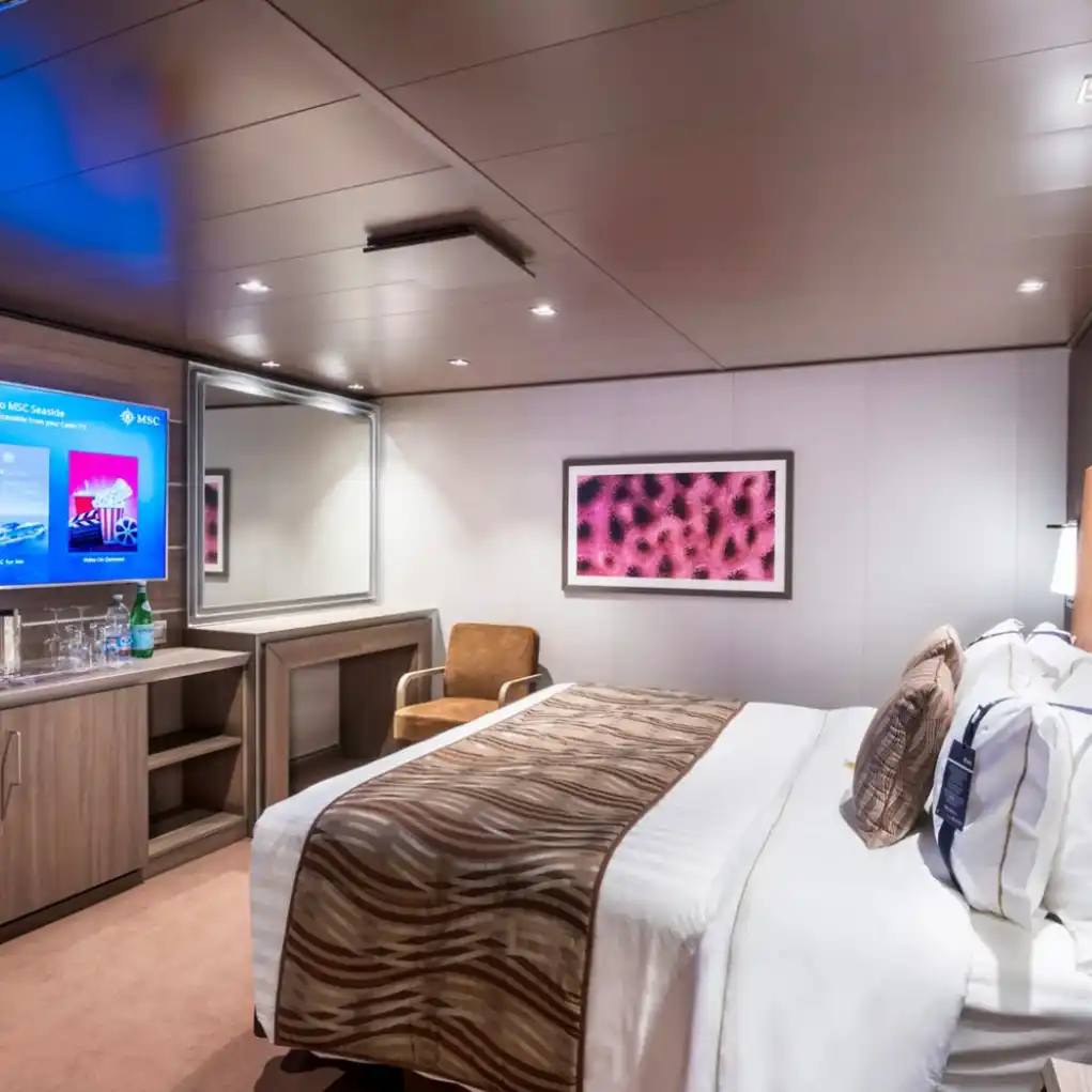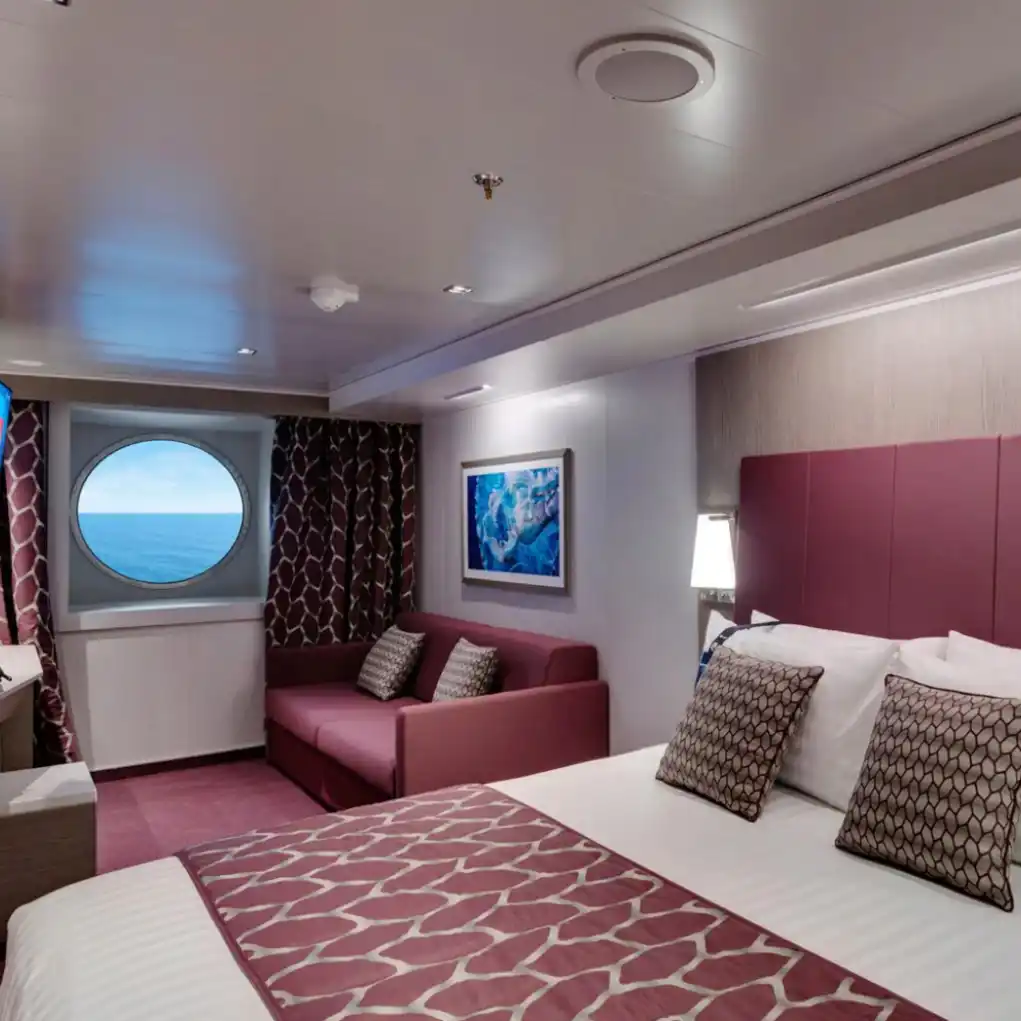 Los camarotes exteriores en el MSC Bellissima ofrecen una opción intermedia entre las cabinas interiores sin ventana y las que tienen balcón. Son ideales si deseas disfrutar de la luz natural y de la vista al mar sin subir al coste adicional de una terraza privada.