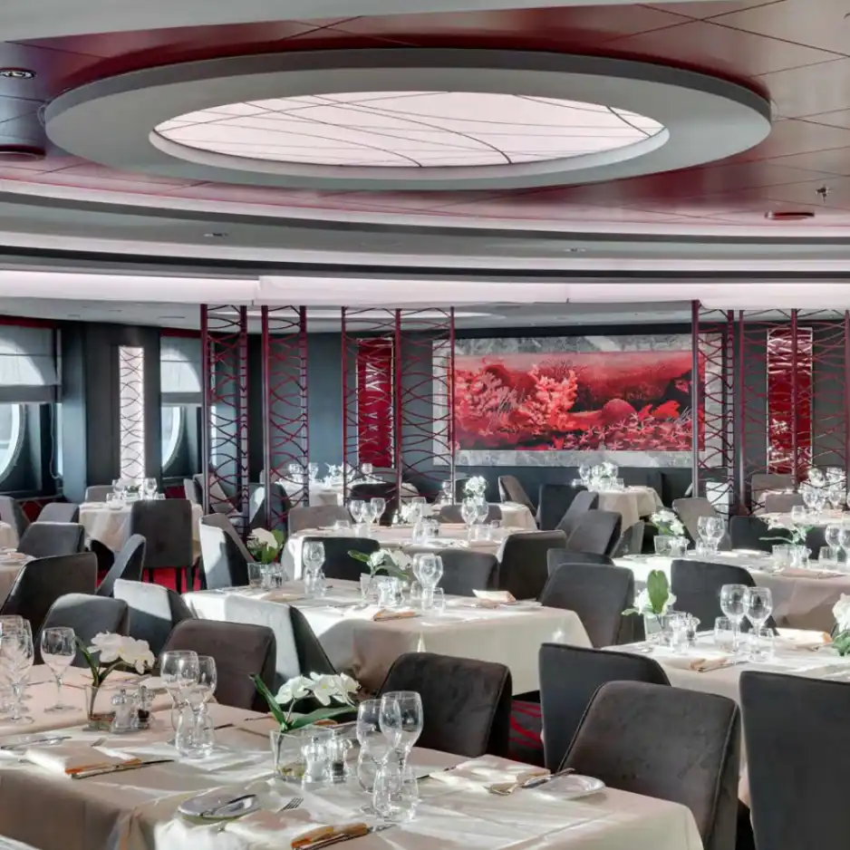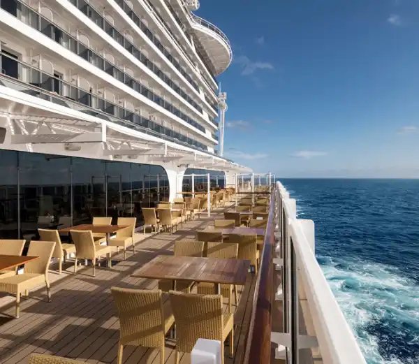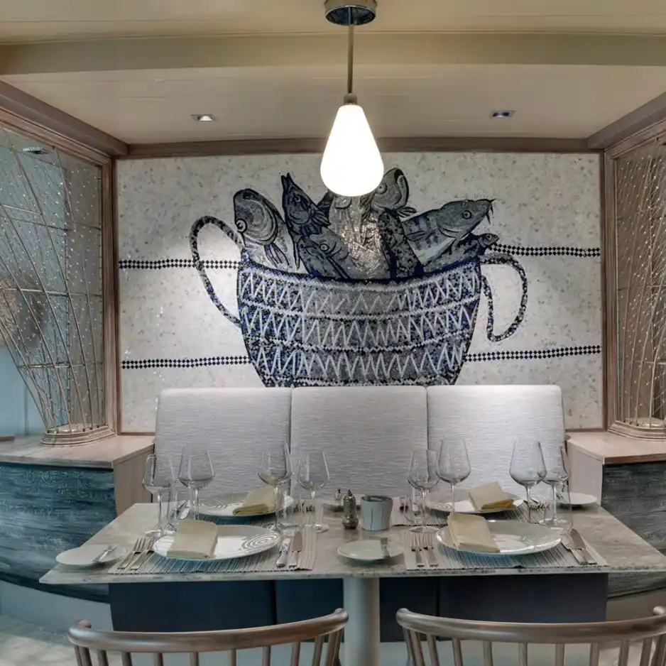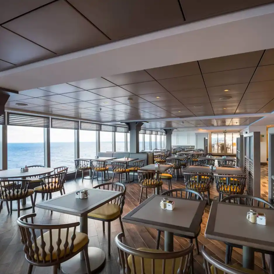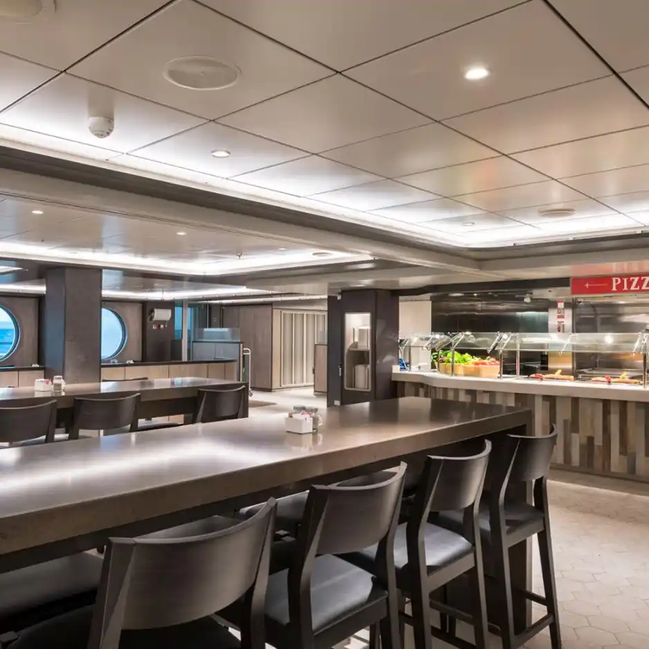 Un lugar maravillosamente cómodo e informal para comer. Es el lugar perfecto para disfrutar de una gran experiencia gastronómica mediterránea informal con una espectacular vista al mar. Las cocinas visibles y una zona de producción de mozzarella permiten a los pasajeros observar cómo nuestros chefs preparan los alimentos frescos. La amplia zona de buffet incluye varios rincones multifunción en los que se sirven platos internacionales, cocina étnica, opciones saludables y multitud de otros sabores.