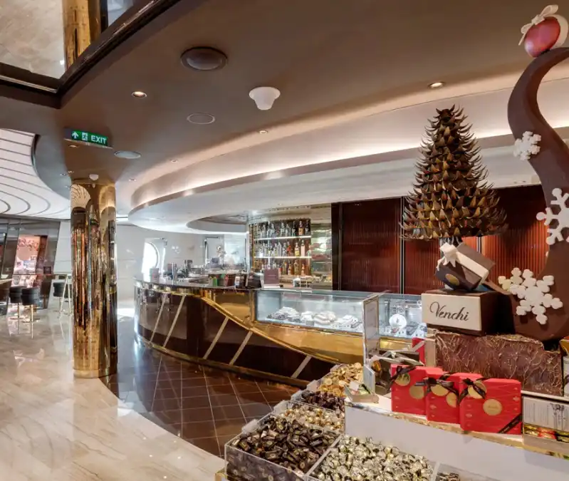 Una auténtica experiencia chocolatera a cargo de Venchi, el mejor chocolate de lujo desde 1878. En este rincón del chocolate, los helados y el café, los pasajeros podrán disfrutar de algunas de las mejores exquisiteces de Venchi mientras observan a sus maestros chocolateros crear toda una serie de auténticas recetas italianas a través de los ventanales que dan a la cocina.