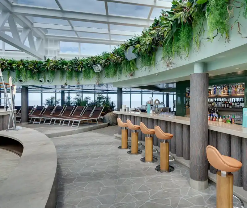 Este relajante chiringuito, situado junto a la piscina, es específico para los pasajeros de la Experiencia Aurea. Su carta ofrece una amplia variedad de cócteles tropicales, margaritas, tragos largos, granizados y otros muchos refrescos.