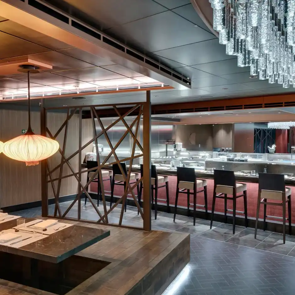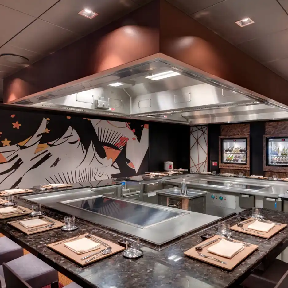 Un estiloso restaurante especializado en teppanyaki. Elige tu sitio en una de las cuatro zonas de cocina, y contempla cómo se van haciendo realidad ante tus propios ojos los platos más deliciosos de la gastronomía japonesa. Nuestros expertos chefs cocinan con estilo en una parrilla abierta, creando un auténtico festival para los sentidos que, gracias a las llamas y a los mejores y más crujientes ingredientes, da forma a unos platos exquisitos que no olvidarás jamás.