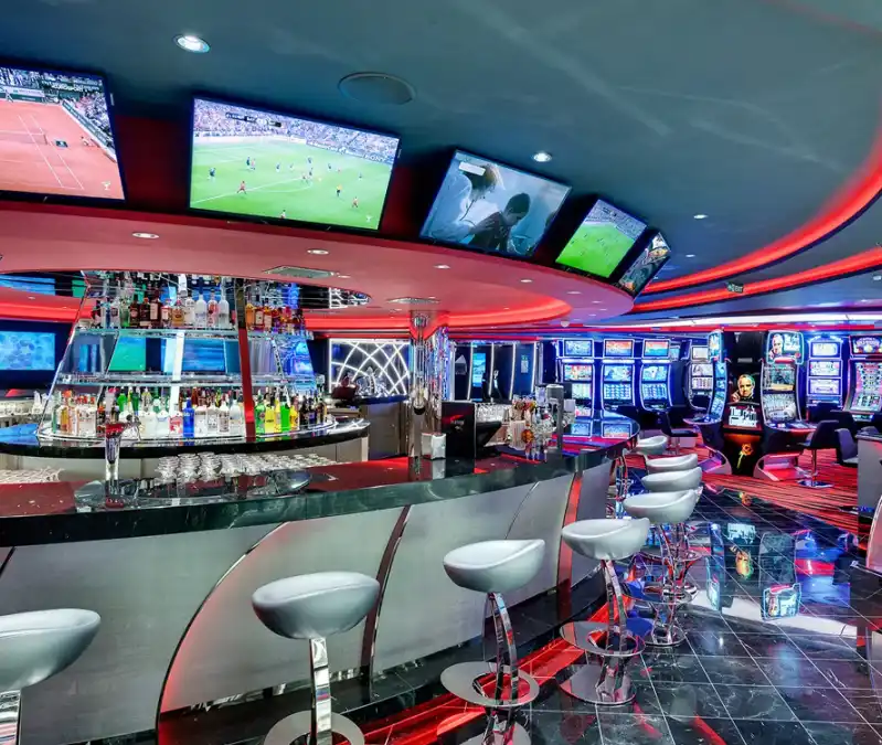 Si te apetece hacer un descanso entre partida y partida o simplemente ver jugar a los demás mientras tomas una copa, este bar, con su propia carta y una vista abierta a toda la sala de juegos, es el lugar ideal.