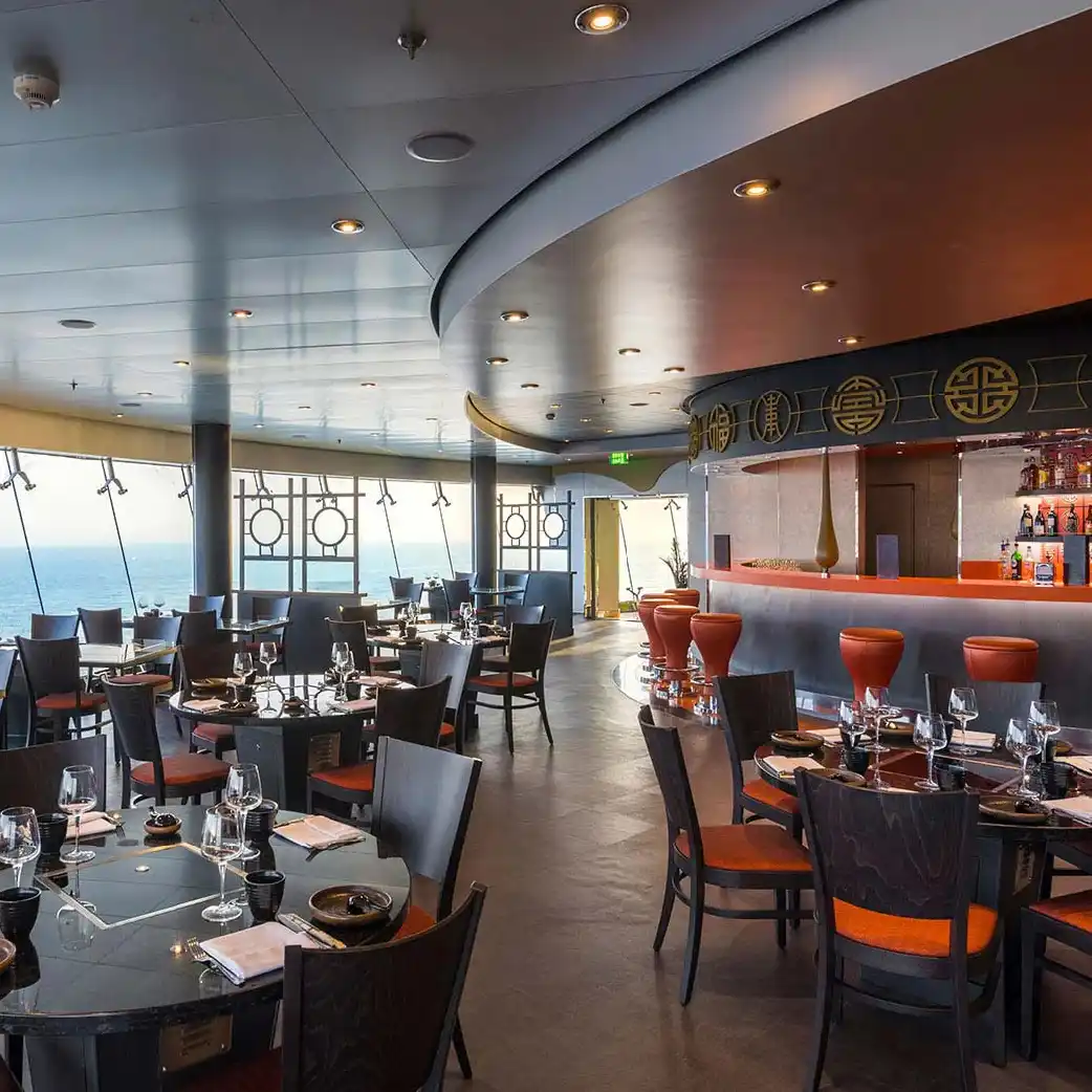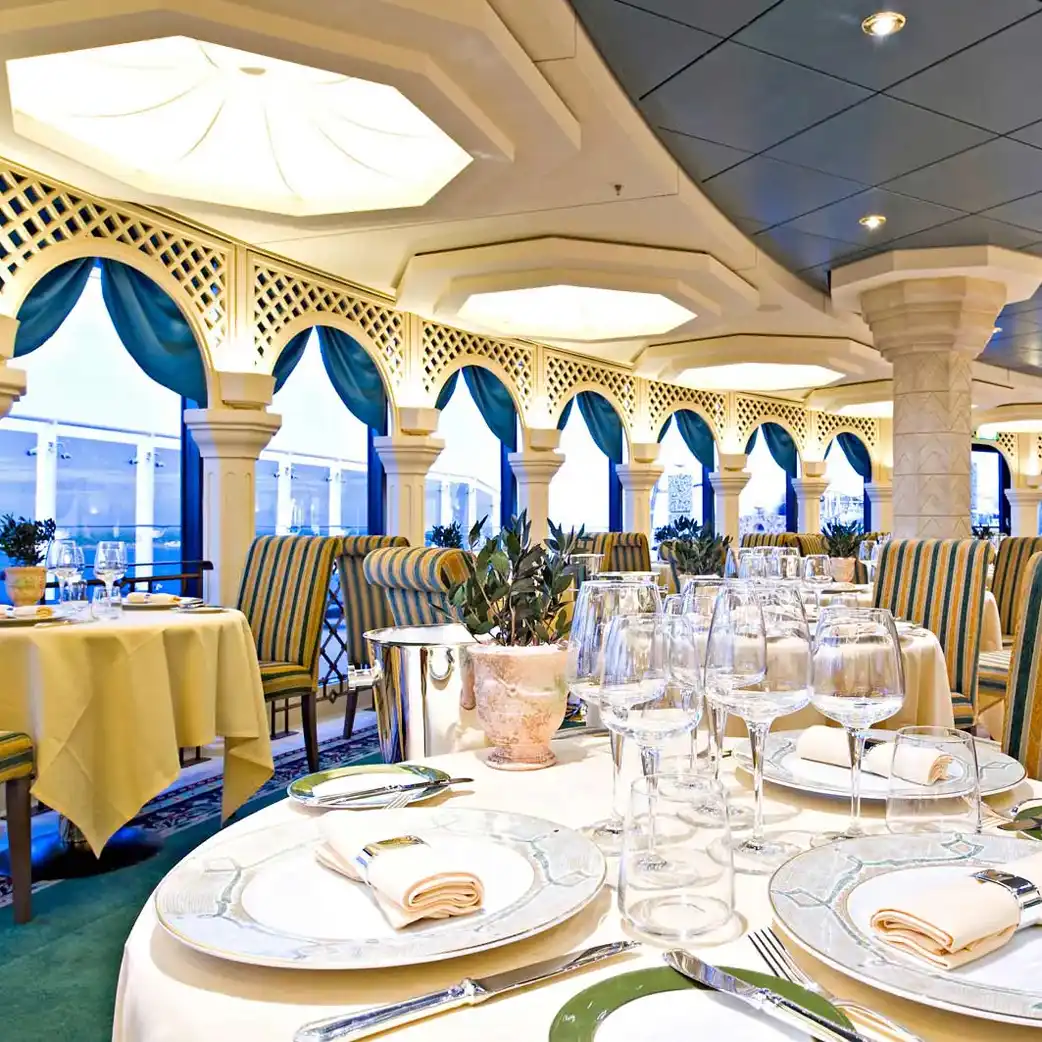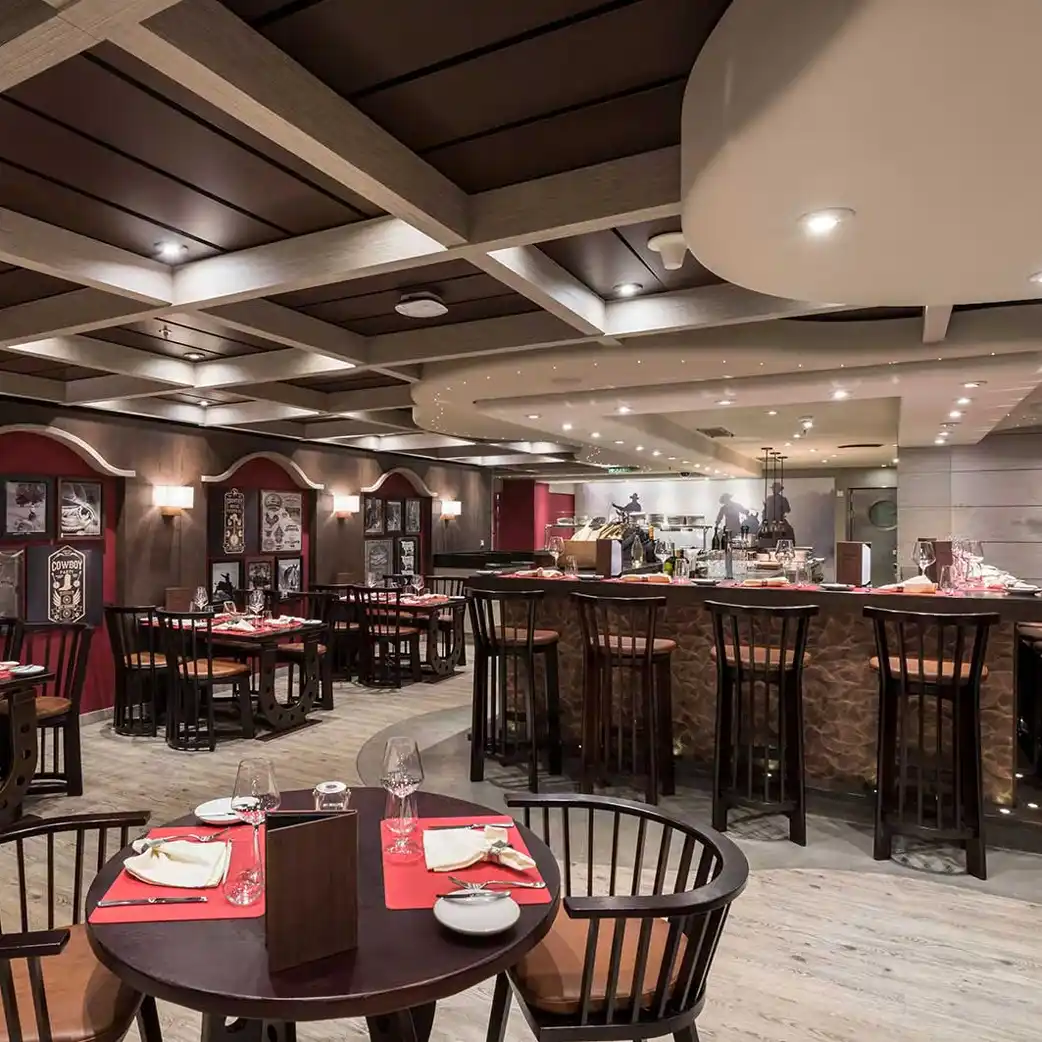 L’Africana Buffet ofrece una experiencia gastronómica variada y flexible, con cocina internacional que incluye ensaladas frescas, pastas, pizzas, platos a la parrilla y especialidades cocinadas al momento. Su ambiente amplio y luminoso, con grandes ventanales que ofrecen vistas al mar, lo convierte en un lugar ideal para desayunar, comer o cenar con tranquilidad. Además, cuenta con opciones pensadas para los más pequeños, asegurando que toda la familia disfrute de cada comida. La combinación de variedad, frescura y un ambiente relajado hace que L’Africana sea uno de los espacios más apreciados a bordo.