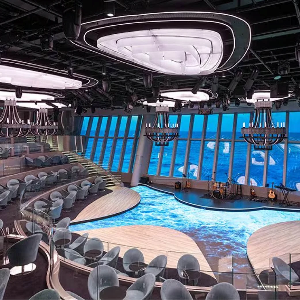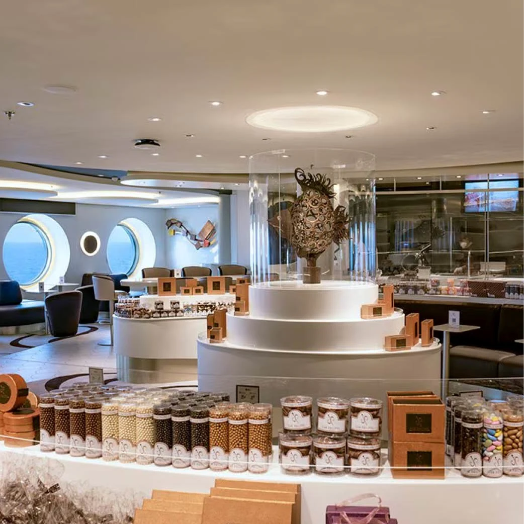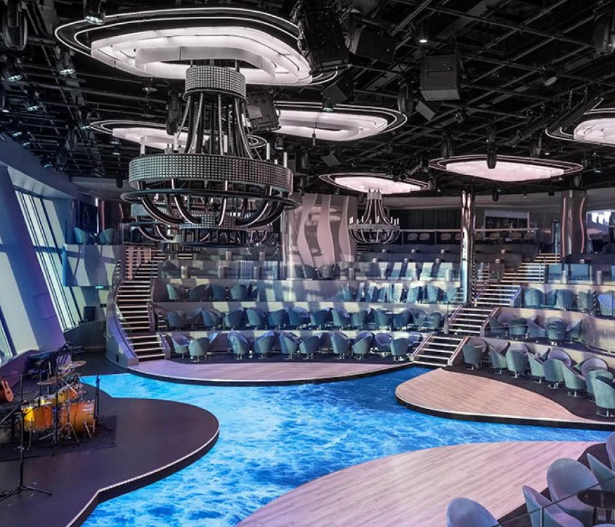 El entretenimiento alcanza un nuevo nivel en nuestro TV Studio & Bar. Transmitiendo en vivo por todo el barco, nuestro TV Studio y la cabina de radio transmiten juegos en vivo, concursos, concursos de talentos y otros contenidos divertidos; también sirve como un club de comedia atmosférico, bar de karaoke y local de música en vivo. Sumérgete en el ambiente mientras transmitimos en vivo o únete y libera a tu estrella interior. Una excelente selección de cócteles, cerveza, vino y refrescos están disponibles para prepararte para tu gran actuación.