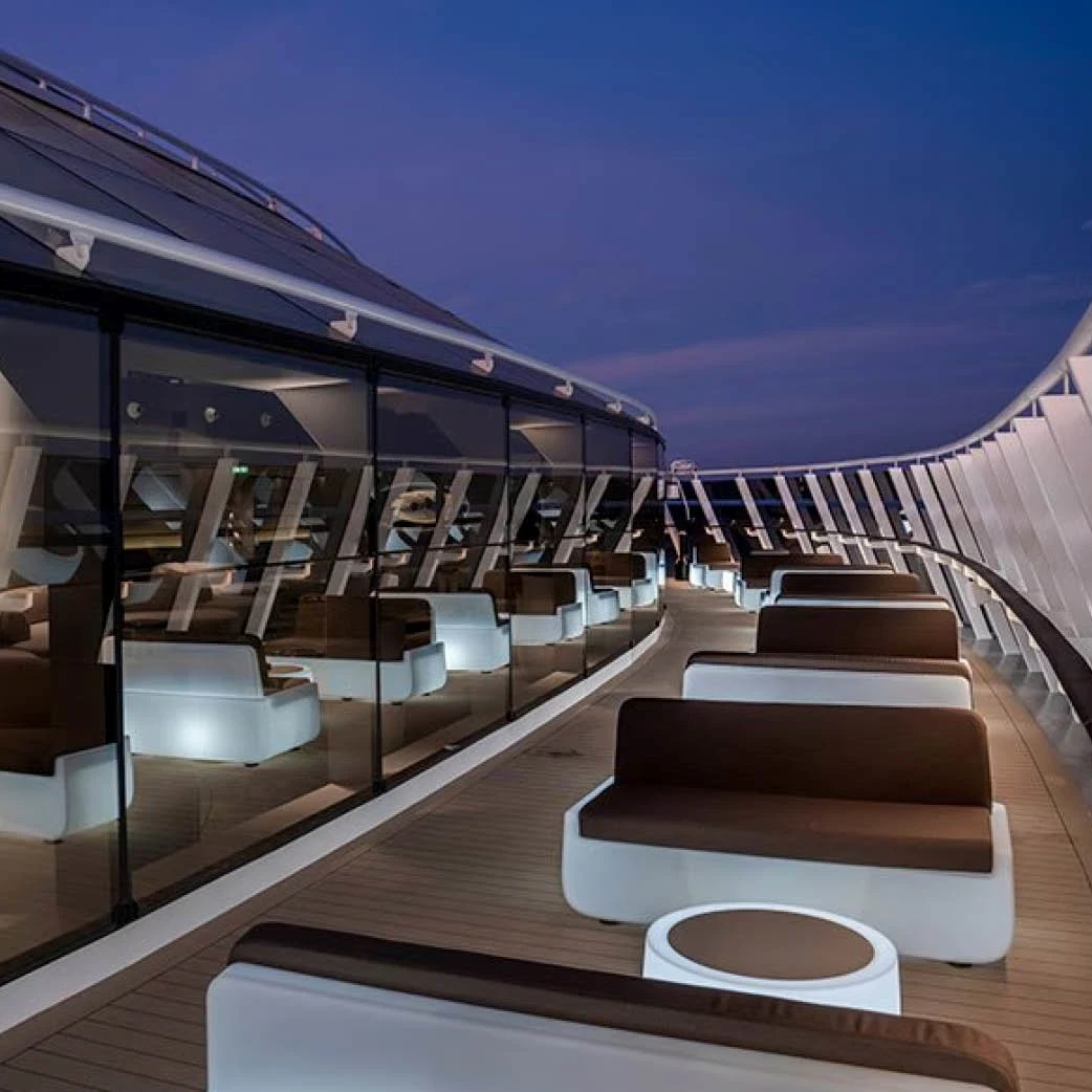Reservado exclusivamente para los pasajeros de MSC Yacht Club, este elegante salón con vistas panorámicas ofrece la carta de bar del Yacht Club con cócteles artesanales, cerveza, vinos selectos, refrescos y bebidas de café. Este elegante salón también ofrece una excelente selección de aperitivos gourmet durante todo el día. Disfrute de las espectaculares vistas en este elegante salón.