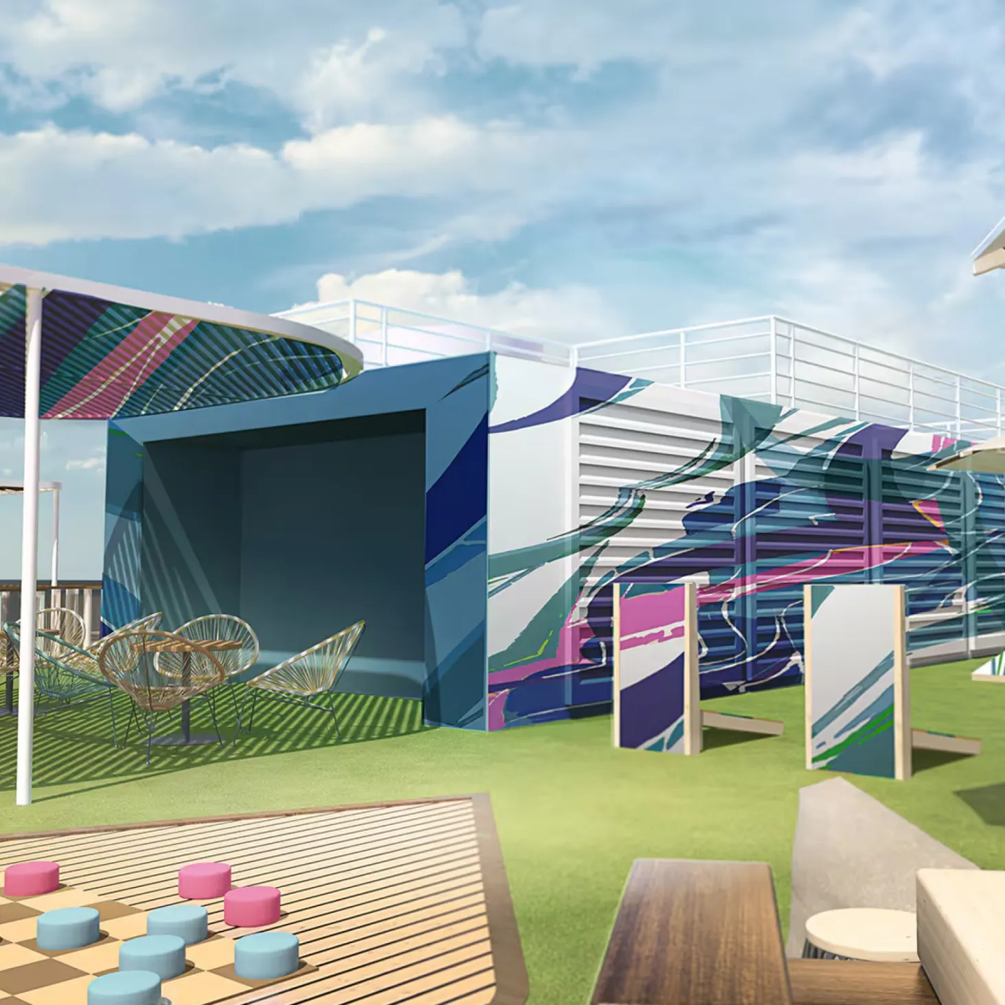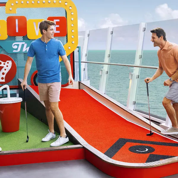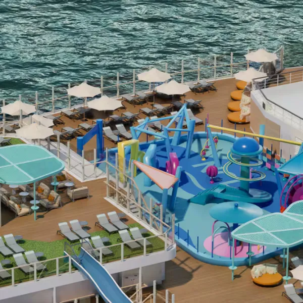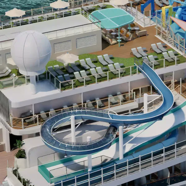 Un centro de actividades al aire libre que rodea el barco y ofrece infinitas oportunidades para jugar, cenar, explorar y relajarse. Niños de todas las edades pueden disfrutar de zonas de diversión exclusivas, desde parques infantiles y espacios de descubrimiento hasta Parque Acuático infantil repleto de acción. Relájate en Infinity Beach o simplemente pasea por la orilla del mar y disfruta de las vistas panorámicas.