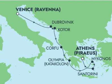 El orden de los puertos y / o el contenido del itinerario puede variar