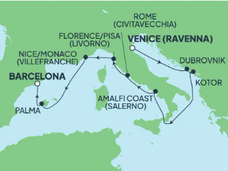 Hasta 300€ de descuento en vuelos para camarotes con balcón o superiores en cruceros de 6 noches o más (se excluyen las categorías BX y MX). La promoción solo aplica a 1º y 2º pasajero de la reserva, no se aplica a los precios de terceros y cuartos adultos compartiendo habitación, niños o bebés. El descuento se aplica cuando se añaden vuelos a la reserva hasta 30 días antes de la salida. Los viajeros que viajen solos reciben el descuento correspondiente. Promoción válida para nuevas reservas hasta el 8 de diciembre 2025. Fechas de salida a las que aplica: 15/06/2026
