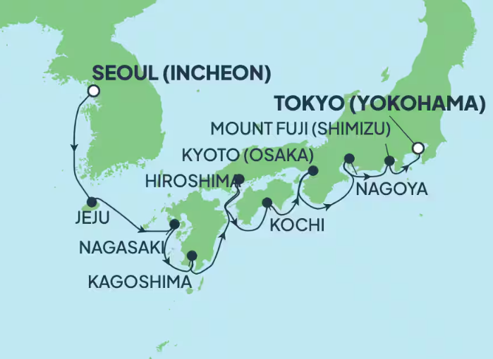 10 puertos de Seúl (Incheon) a Yokohama (Tokio)