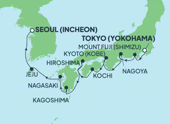 10 puertos de Yokohama (Tokio) a Seúl (Incheon)