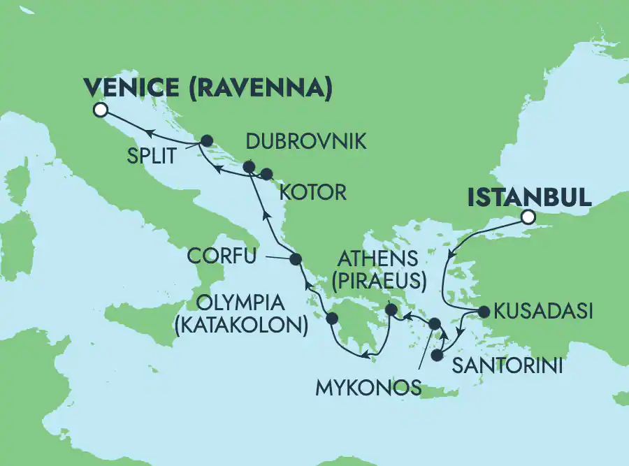 El orden de los puertos y / o el contenido del itinerario puede variar