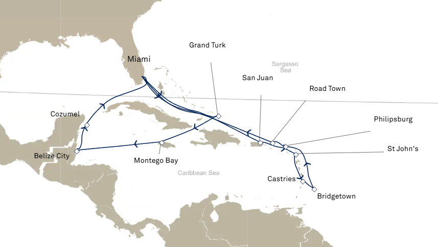 El orden de los puertos y / o el contenido del itinerario puede variar