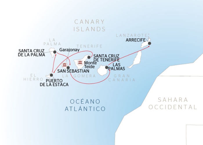 El orden de los puertos y / o el contenido del itinerario puede variar