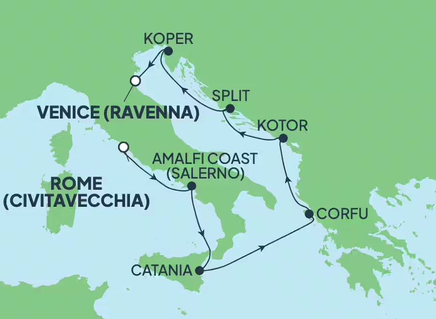 El orden de los puertos y / o el contenido del itinerario puede variar