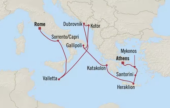 11 puertos de Pireo (Atenas) a Civitavecchia (Roma)