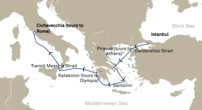 7 puertos de Estambul a Civitavecchia (Roma)