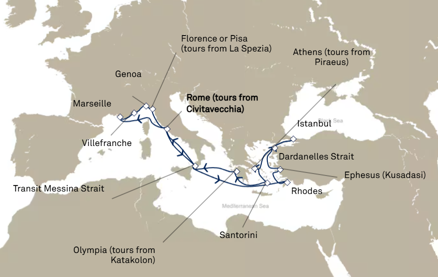 13 puertos desde Civitavecchia (Roma)