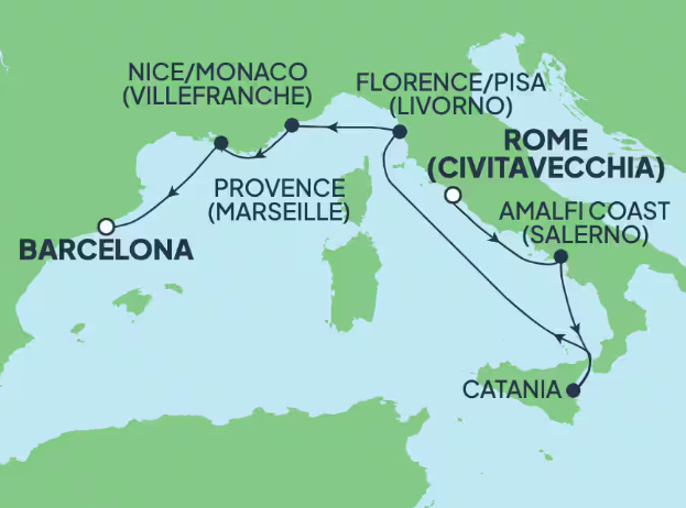 7 puertos de Civitavecchia (Roma) a Barcelona