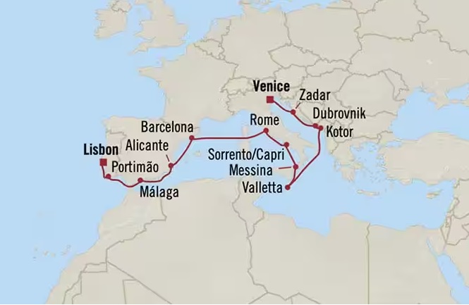 El orden de los puertos y / o el contenido del itinerario puede variar