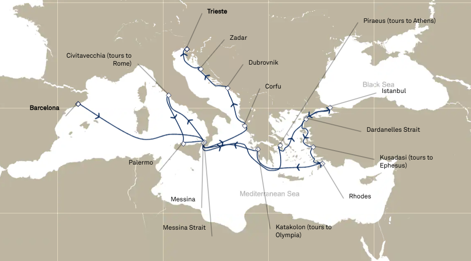 El orden de los puertos y / o el contenido del itinerario puede variar