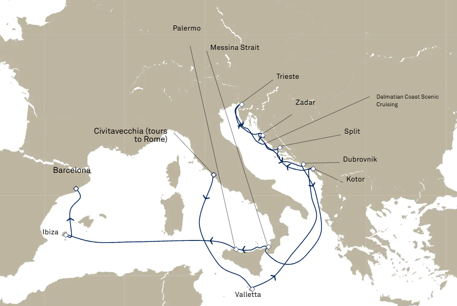12 puertos de Civitavecchia (Roma) a Barcelona