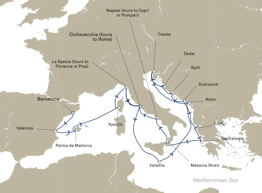16 puertos de Barcelona a Civitavecchia (Roma)